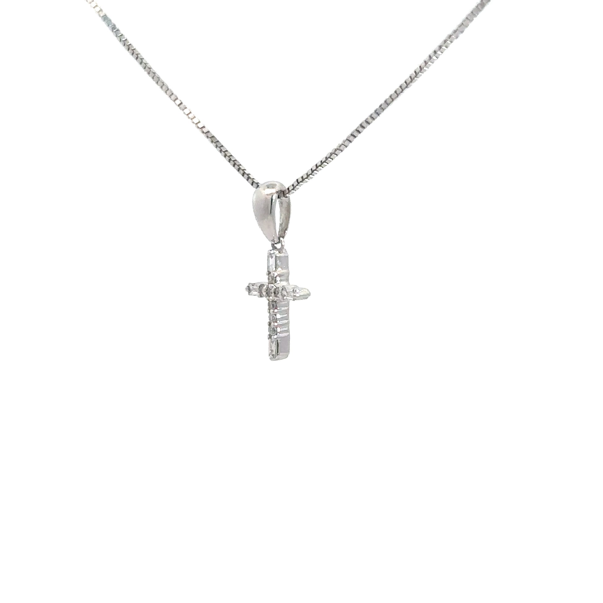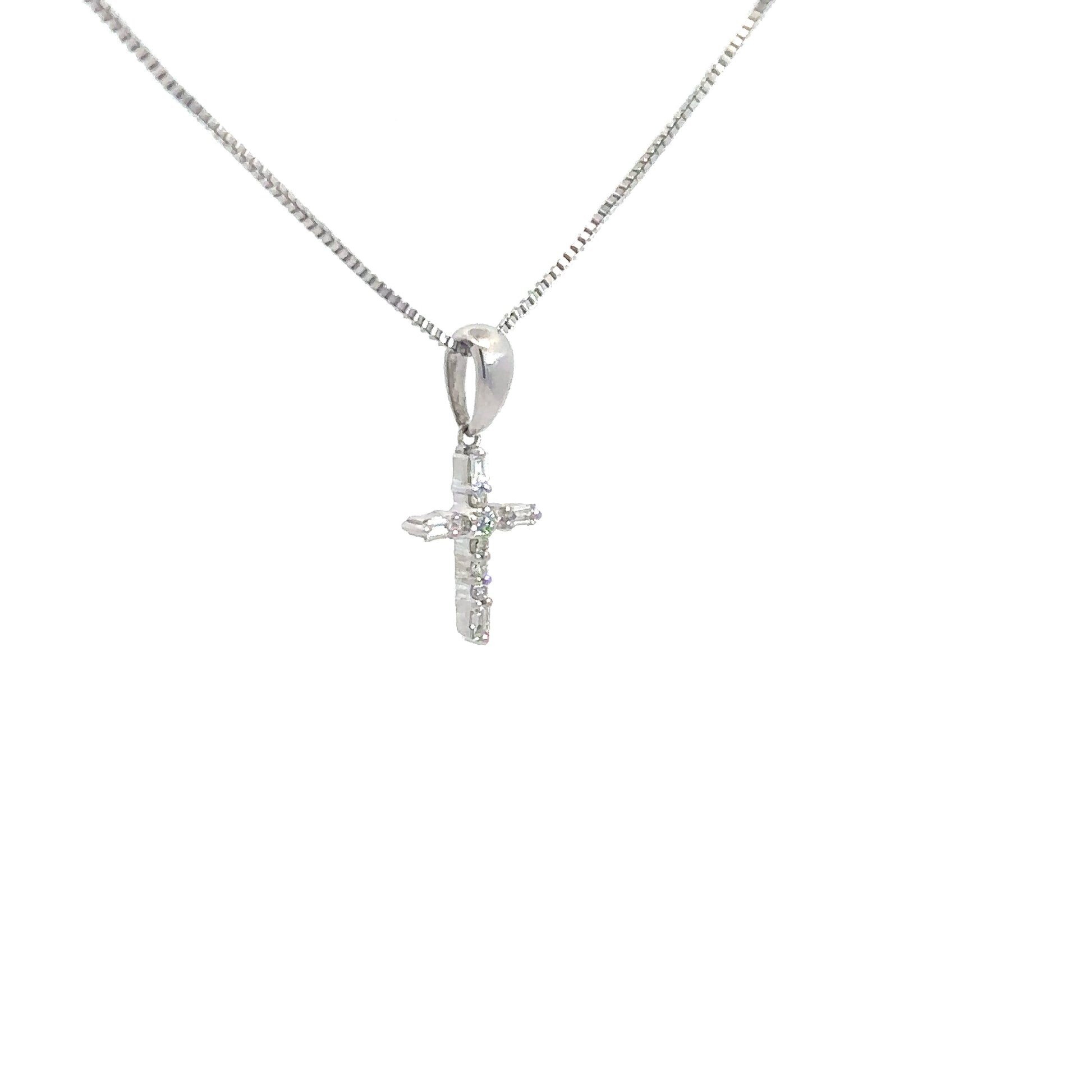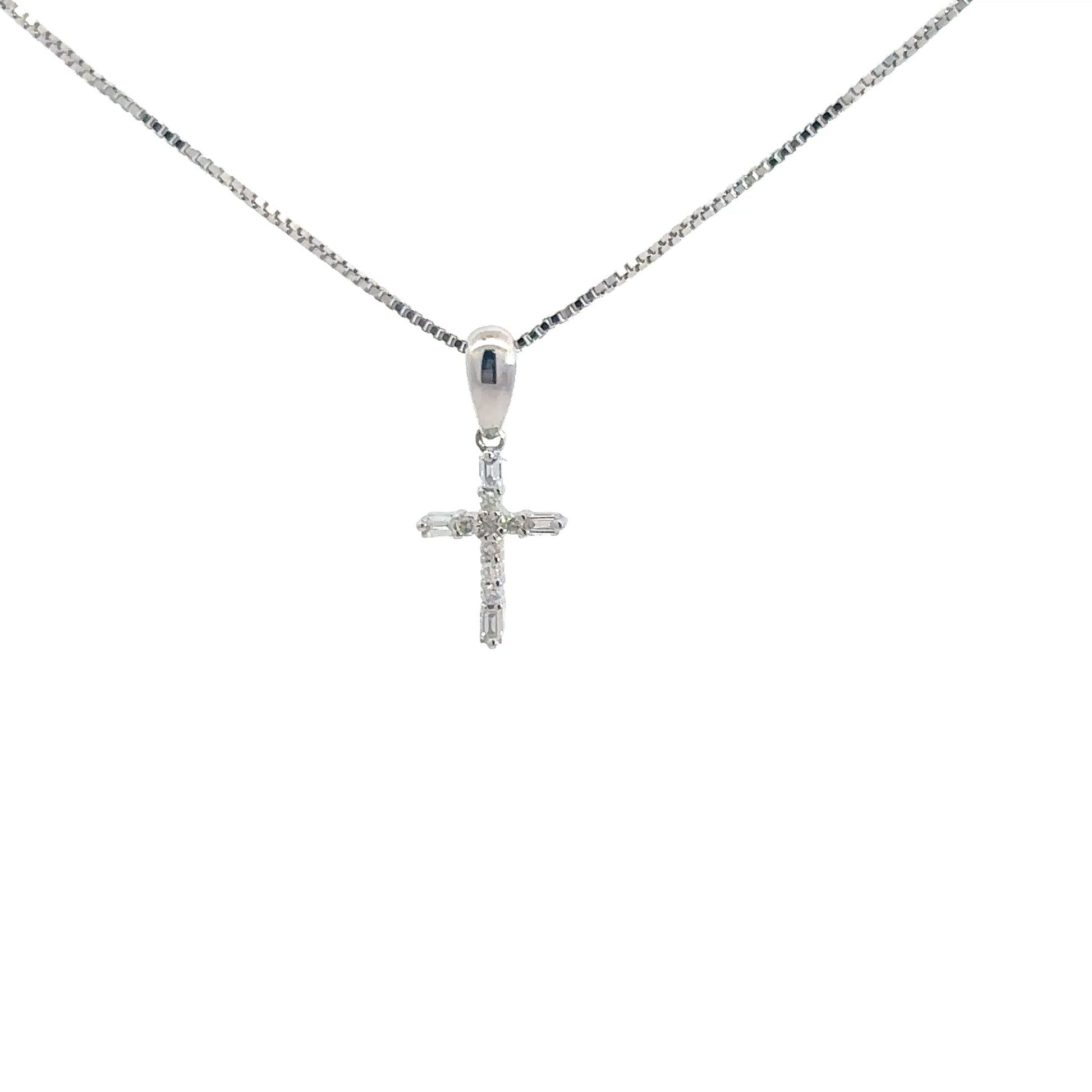 This elegant ladies' cross is crafted from 14k white gold and features 11 round brilliant diamonds, totaling approximately .06 carats. Its refined design beautifully highlights the sparkle of each diamond, making it a timeless piece to cherish.