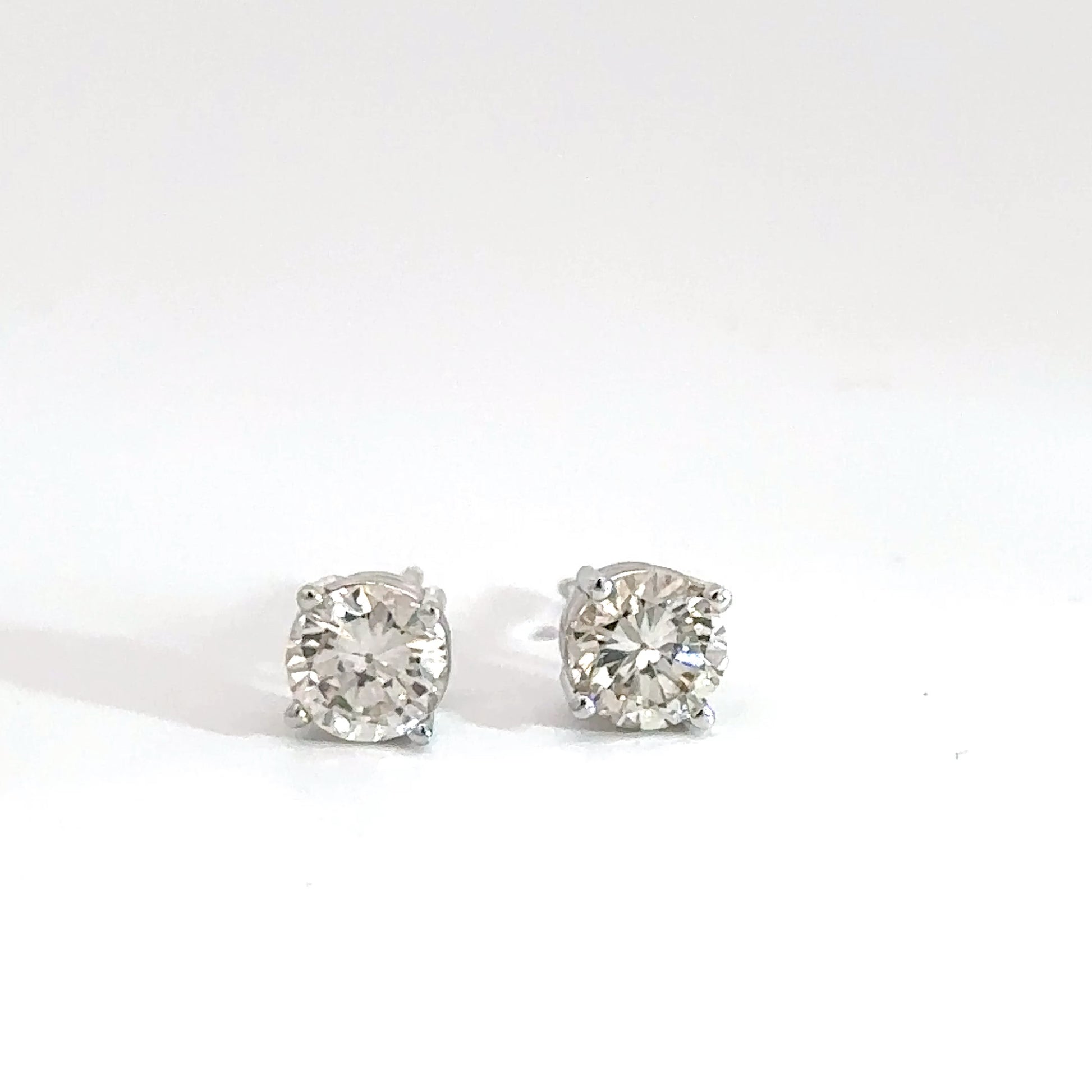 These stunning round brilliant diamond earrings are crafted in 14k white gold, showcasing a total weight of 1.01cttw. Their impressive clarity of SI1-SI2 and gorgeous body color of (G-H) make them a truly special piece.