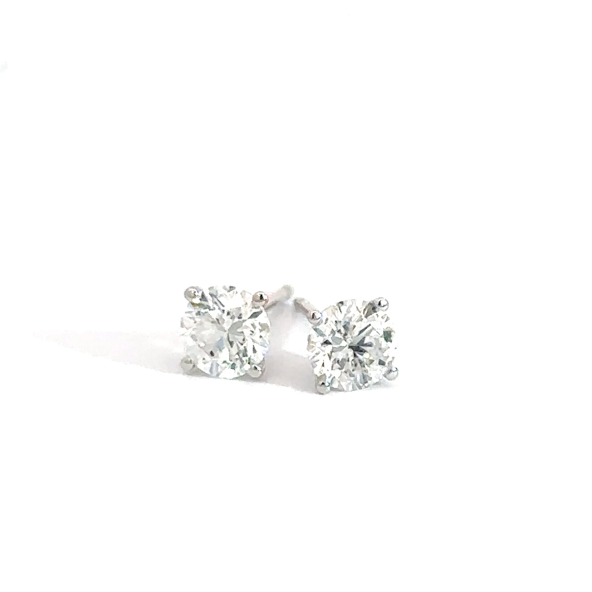 These diamond solitaire earrings are crafted with 14k white gold and feature round brilliant diamonds totaling approximately 1.01 cttw. With a clarity range of SI1 and a body color of (G-H).
