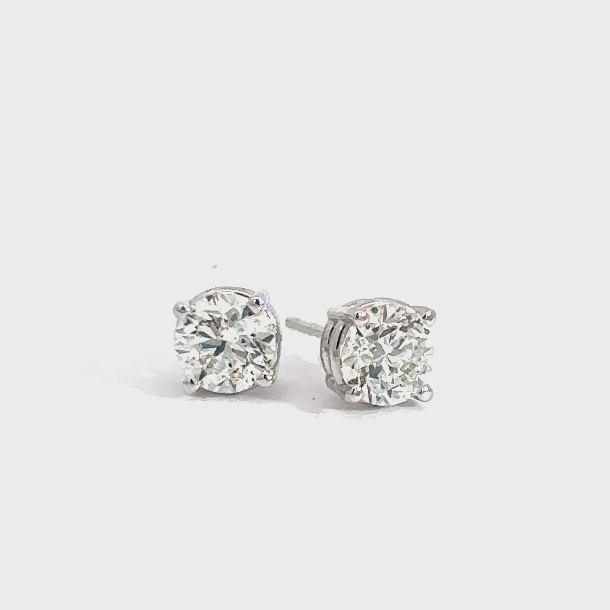 These diamond solitaire earrings are crafted with 14k white gold and feature round brilliant diamonds totaling approximately 1.20 cttw. With a clarity range of SI1 and a body color of (G-H).