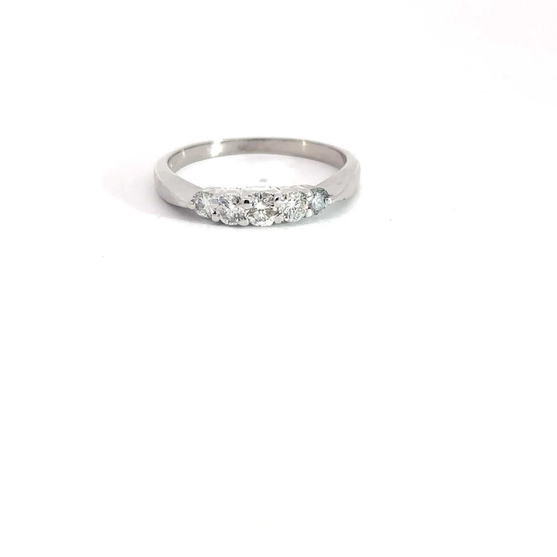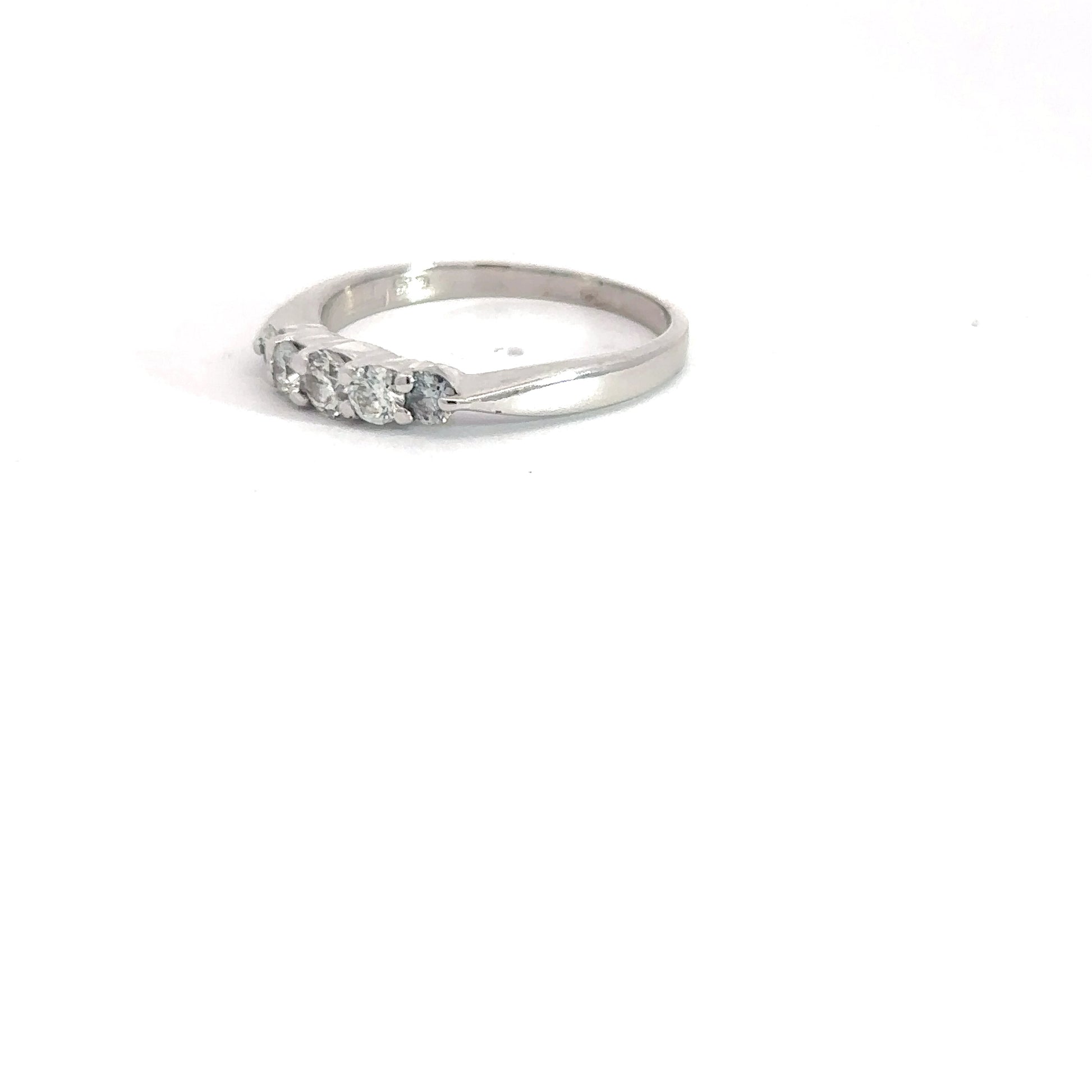 Transform your hand with this stunning 14k white gold diamond band. Five round brilliant diamonds, with an approximate total weight of .50cttw, shine beautifully with SI2 clarity and a (G-H) body color. Take your look to the next level with this elegant and timeless piece.
