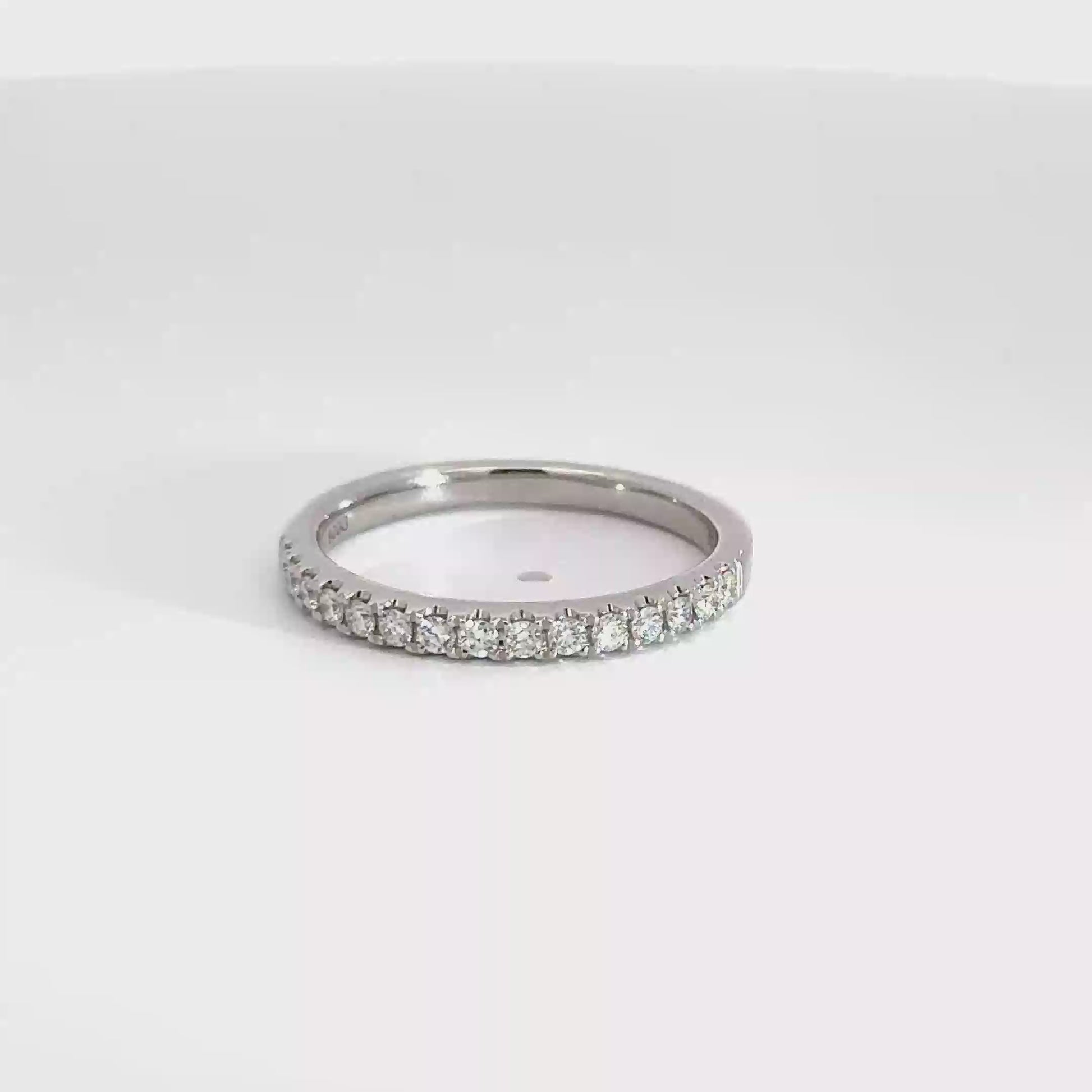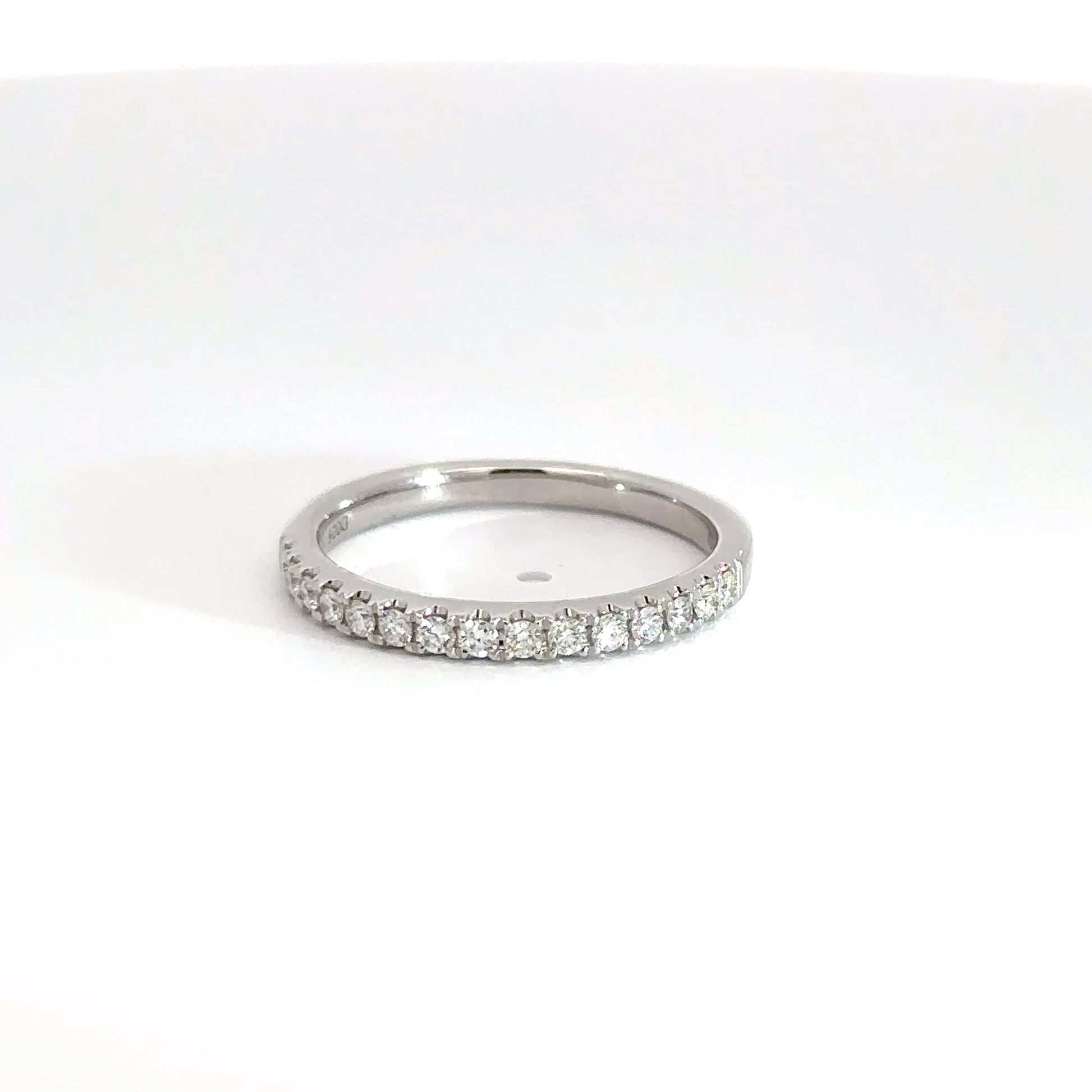 14k white gold diamond band. This band consists of 15 round brilliant diamonds with an approximate total weight of .26cttw. The diamonds have a clarity of SI2 and a body color of (F-G).