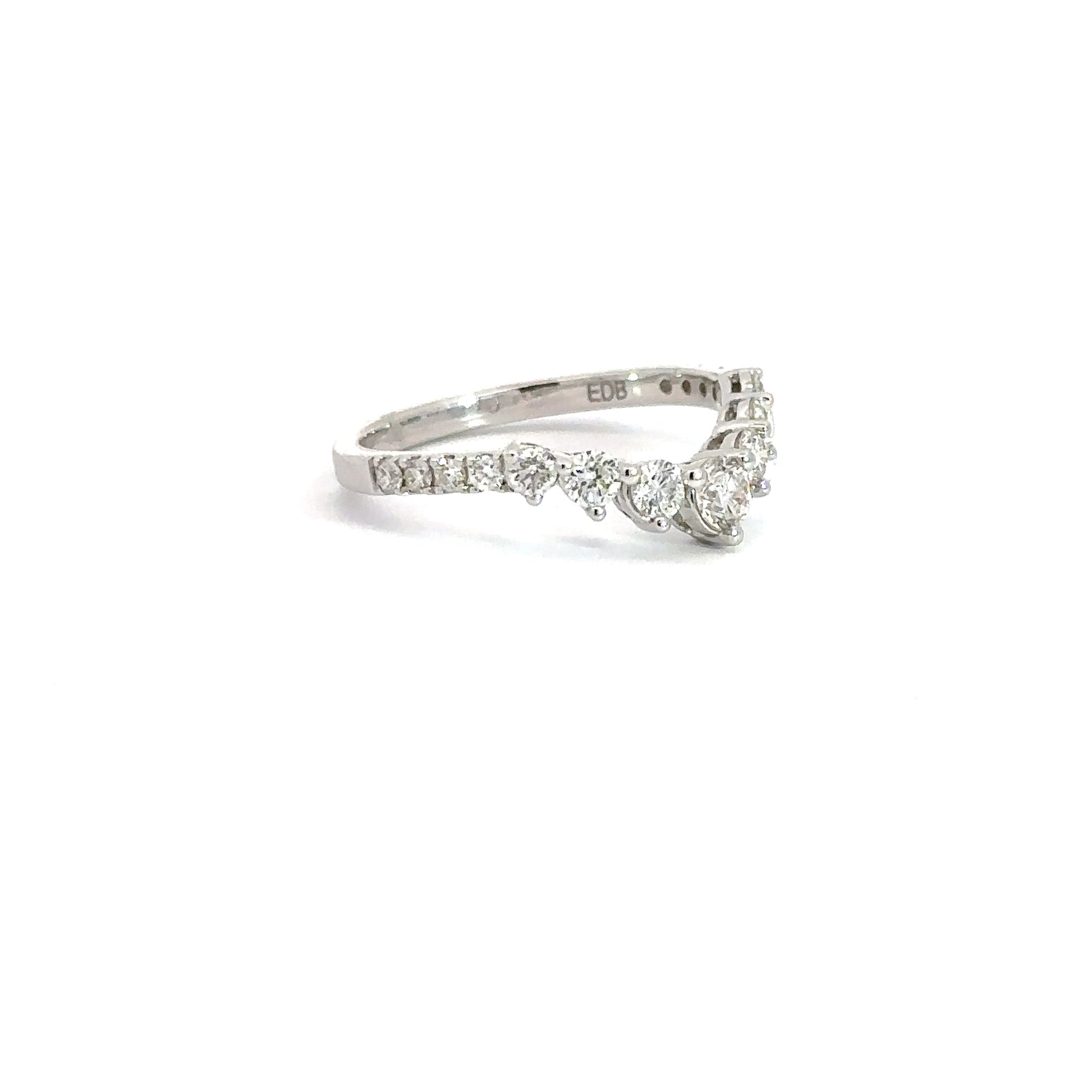 Upgrade your style with this stunning Lady's 14k white gold diamond curve band! This band features 15 round brilliant diamonds with an approximate total weight of .75cttw, giving you the perfect balance of elegance and sparkle. The diamonds boast a clarity of (G-H), ensuring a dazzling display. Elevate any look with this gorgeous diamond band, a true statement piece for any jewelry collection.