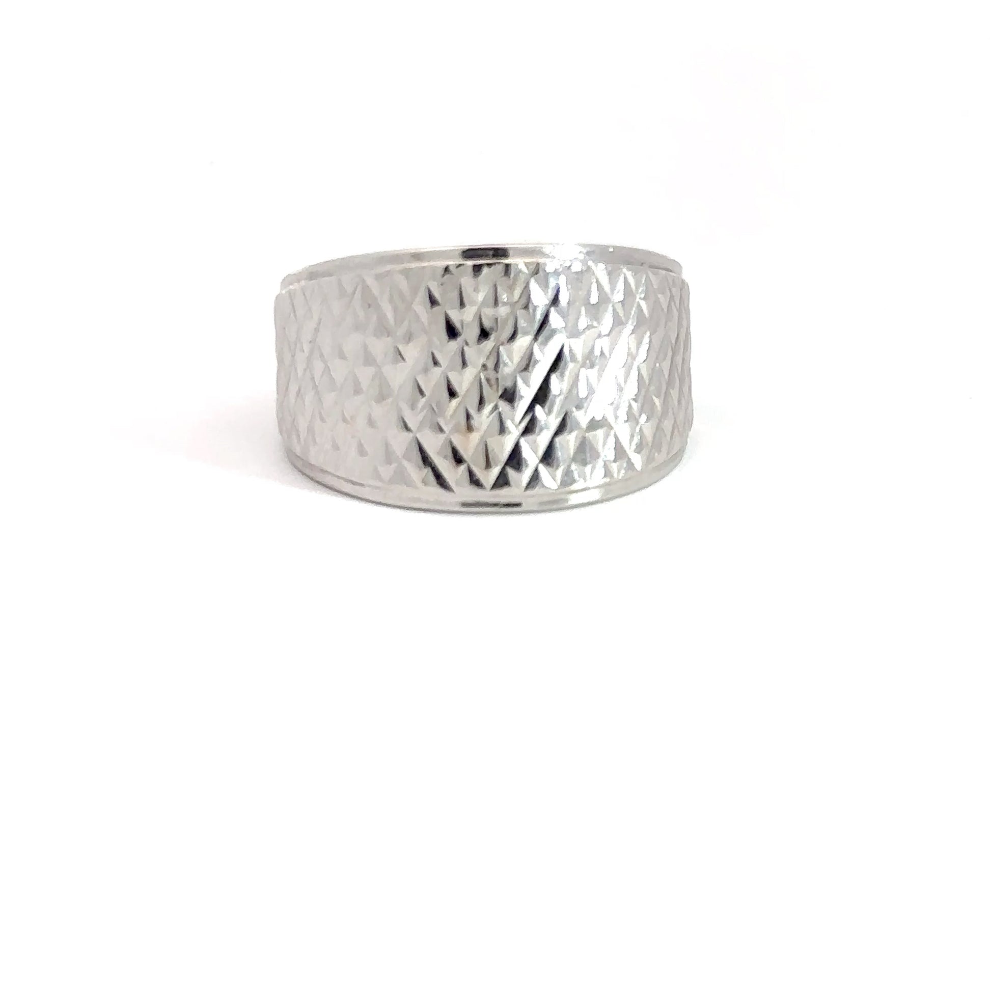 A solid and elegant fashion statement. This band features a unique diamond cut design and is crafted from high-quality 14k white gold. Perfect for adding sophistication to any outfit.