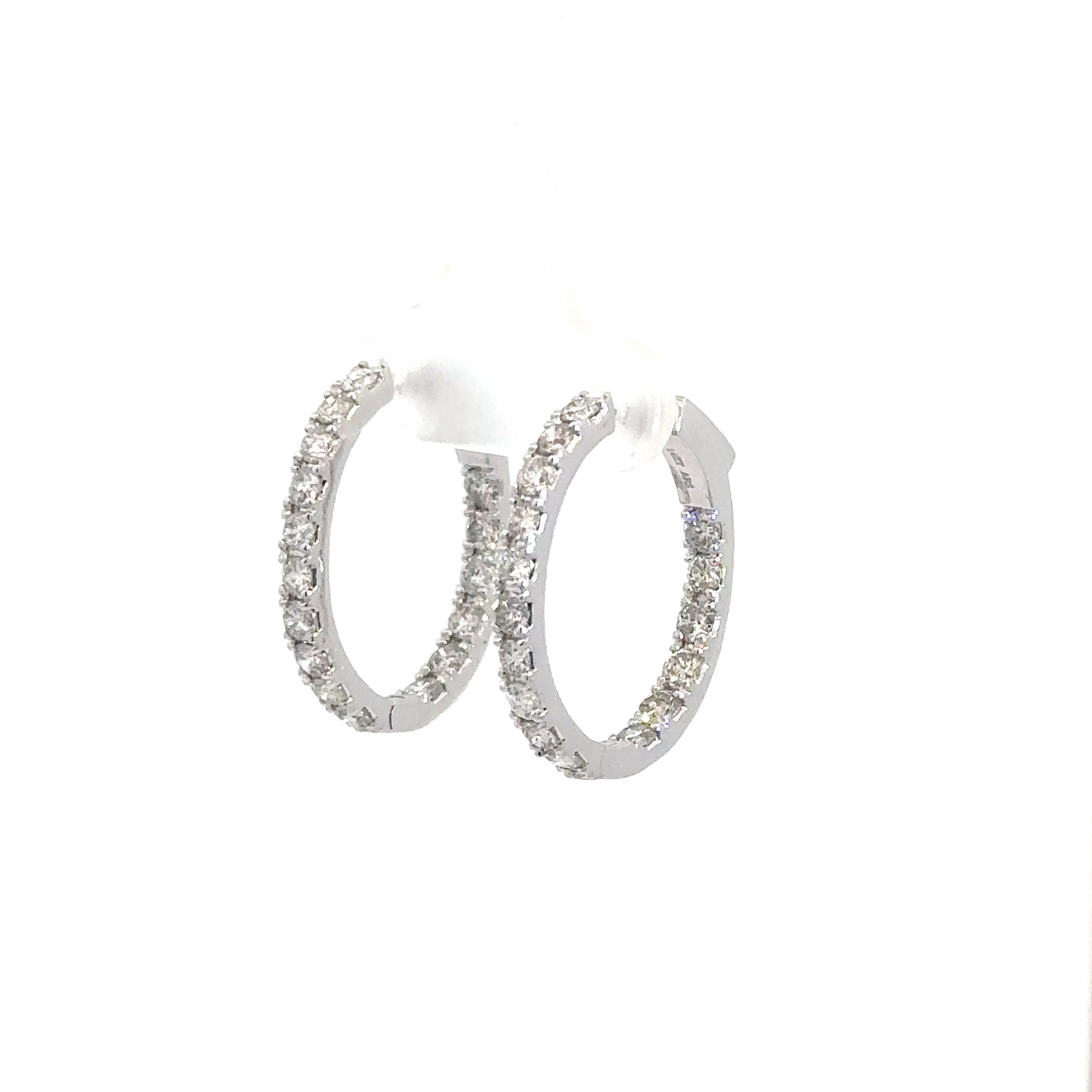 14k White Gold Diamond In/Out Hoop Earrings 2cttw