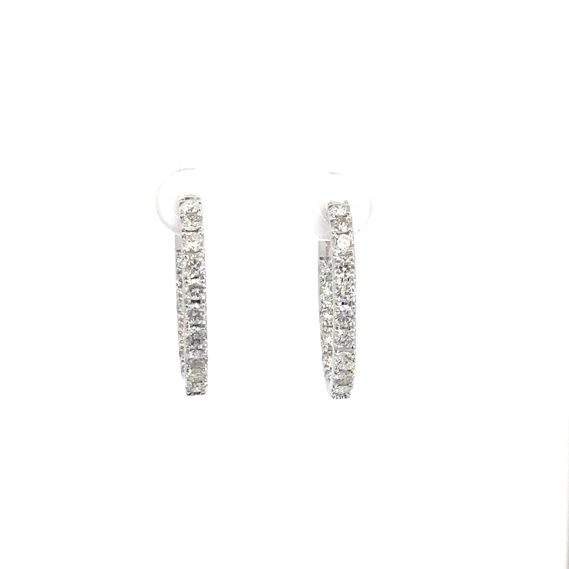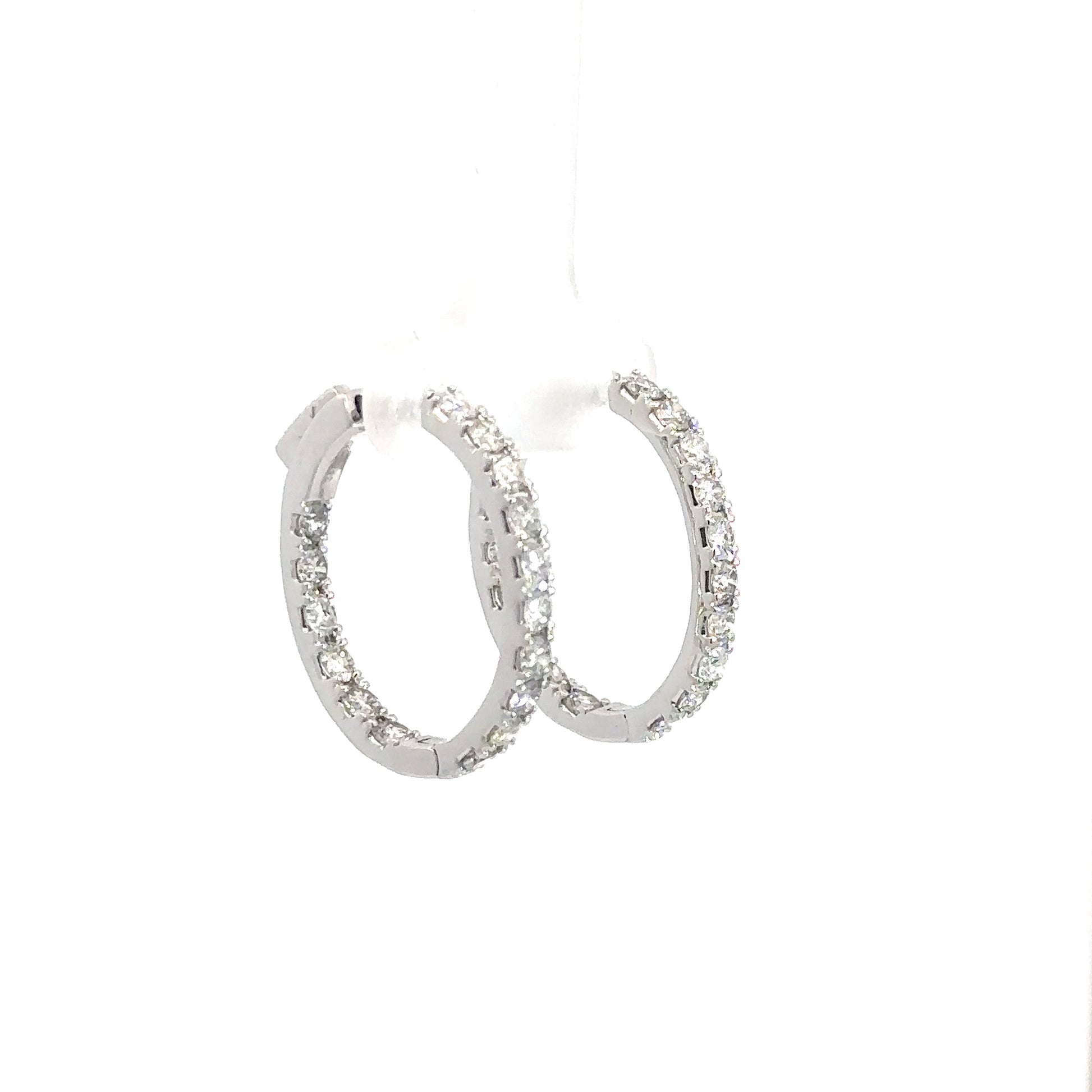 These elegant ladies' hoop earrings are crafted from 14k white gold and feature diamonds on both the inner and outer surfaces. With a combined diamond weight of approximately 2 carats, they offer stunning sparkle and timeless style.