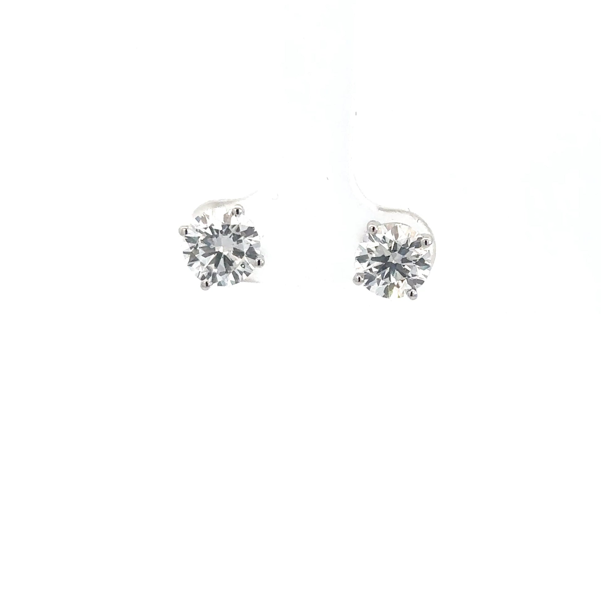 These elegant ladies’ stud earrings feature 14k white gold settings showcasing lab grown round brilliant diamonds. With a combined total weight of approximately 3.09 carats, these stunning earrings offer exceptional sparkle and timeless beauty.