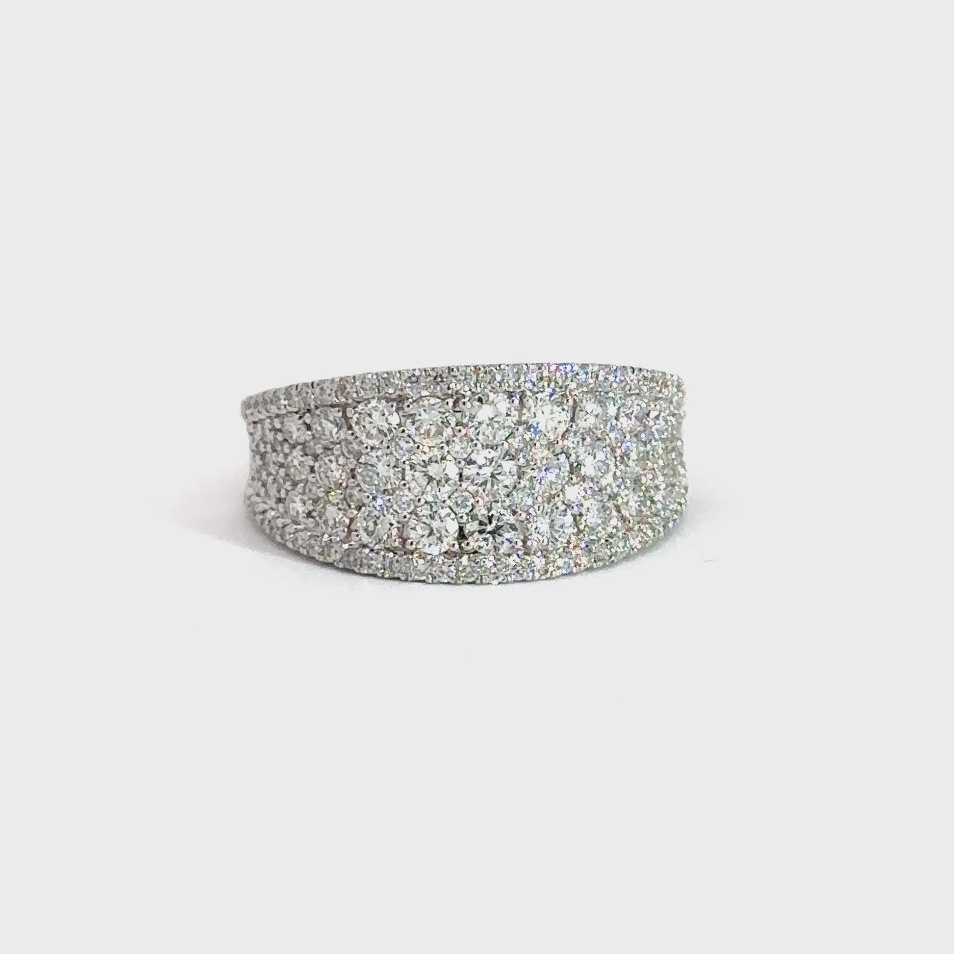 Expertly crafted from striking 14k white gold, this stunning diamond band showcases a cluster of pave set round brilliant diamonds totaling approximately 1.25cttw. Its impressive diamonds have a clarity of SI1 and a body color of (F-G), making for a truly luxurious piece.