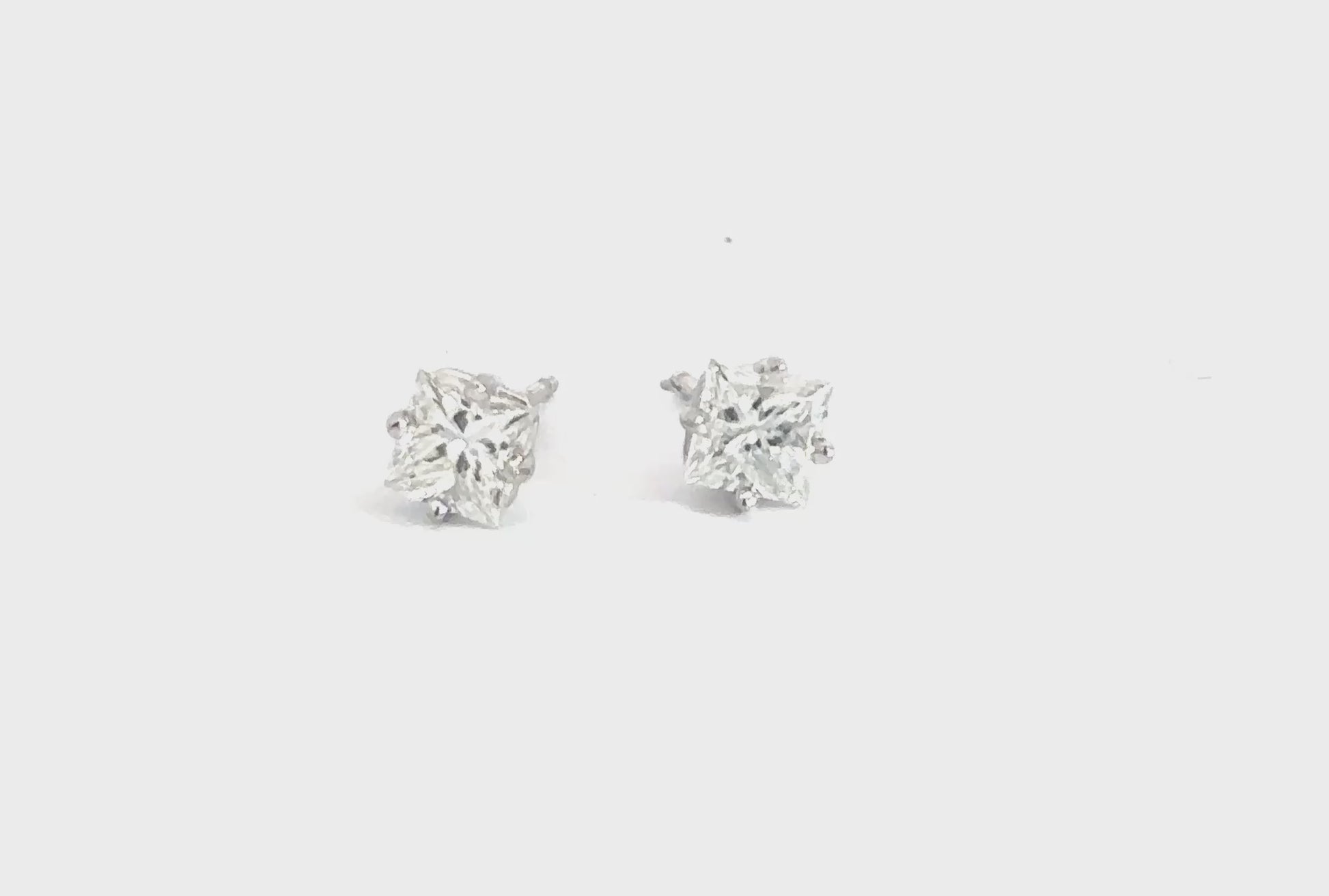 14k White Gold Princess Cut Diamond Earrings 1cttw