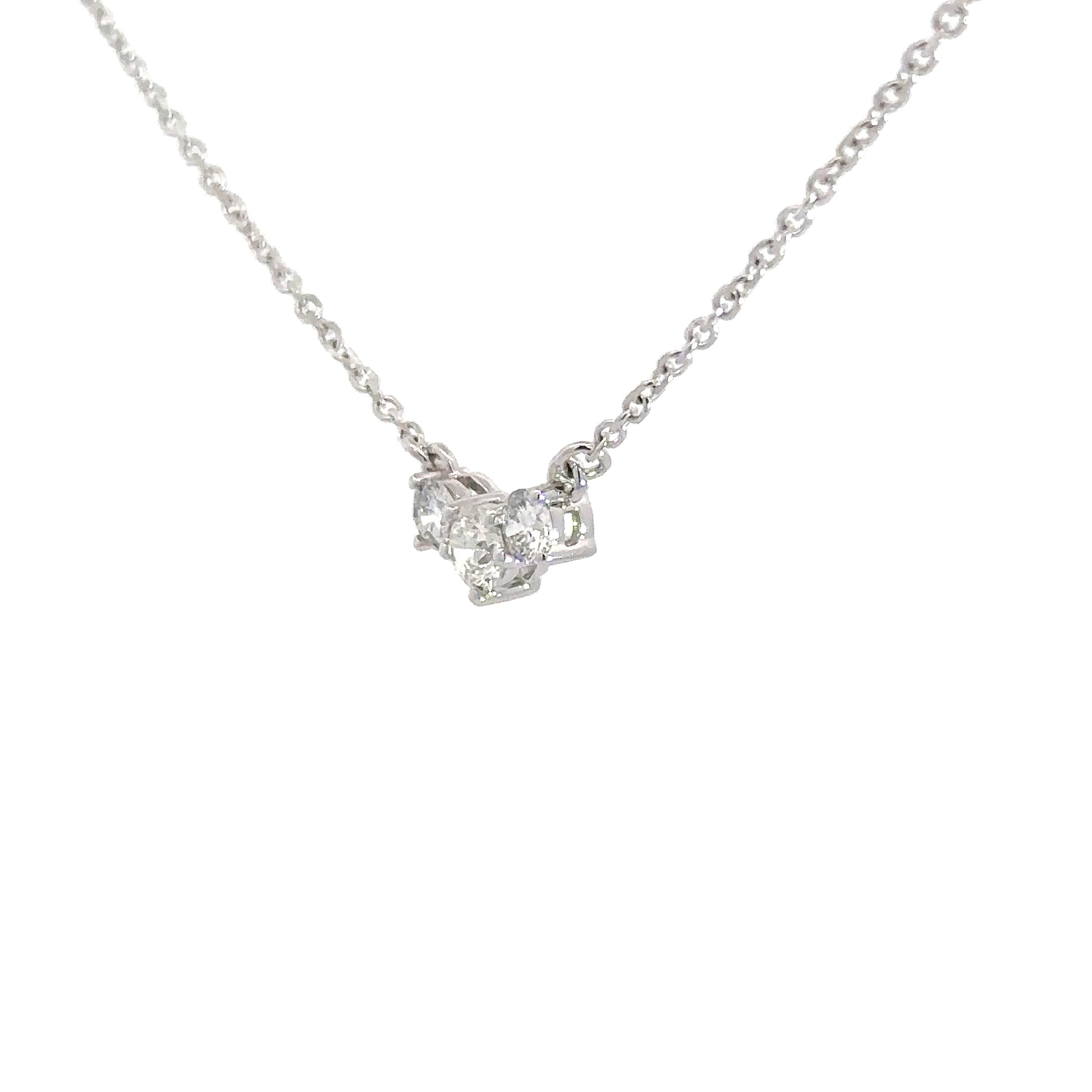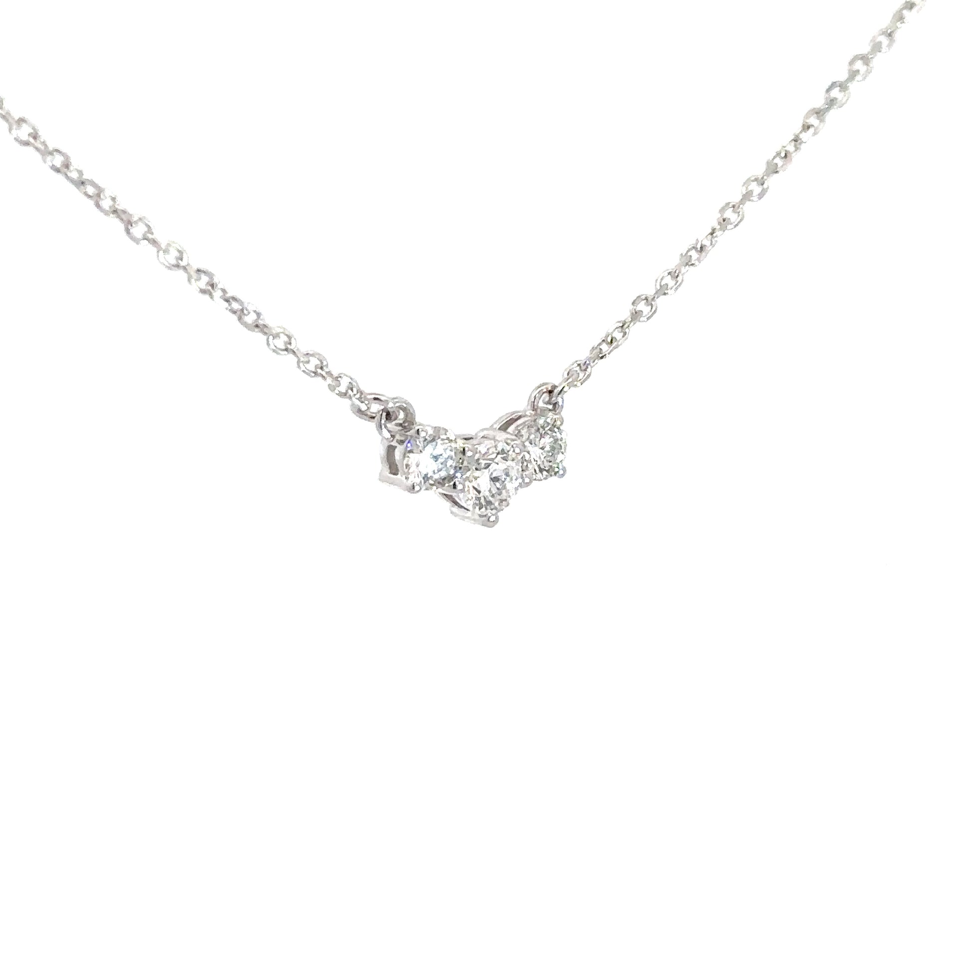 Elevate your everyday elegance with this stunning 14k white gold pendant featuring three radiant round brilliant diamonds. Carefully arranged and securely set, these diamonds totaling approximately .81 carats create a timeless piece that captures light beautifully from every angle. Perfect for layering or wearing solo, this sophisticated design complements any style while delivering the luxury and sparkle you deserve.