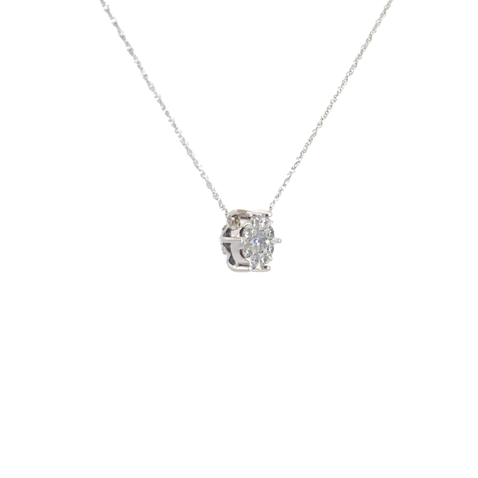 14k White Round Diamond Cluster Pendant