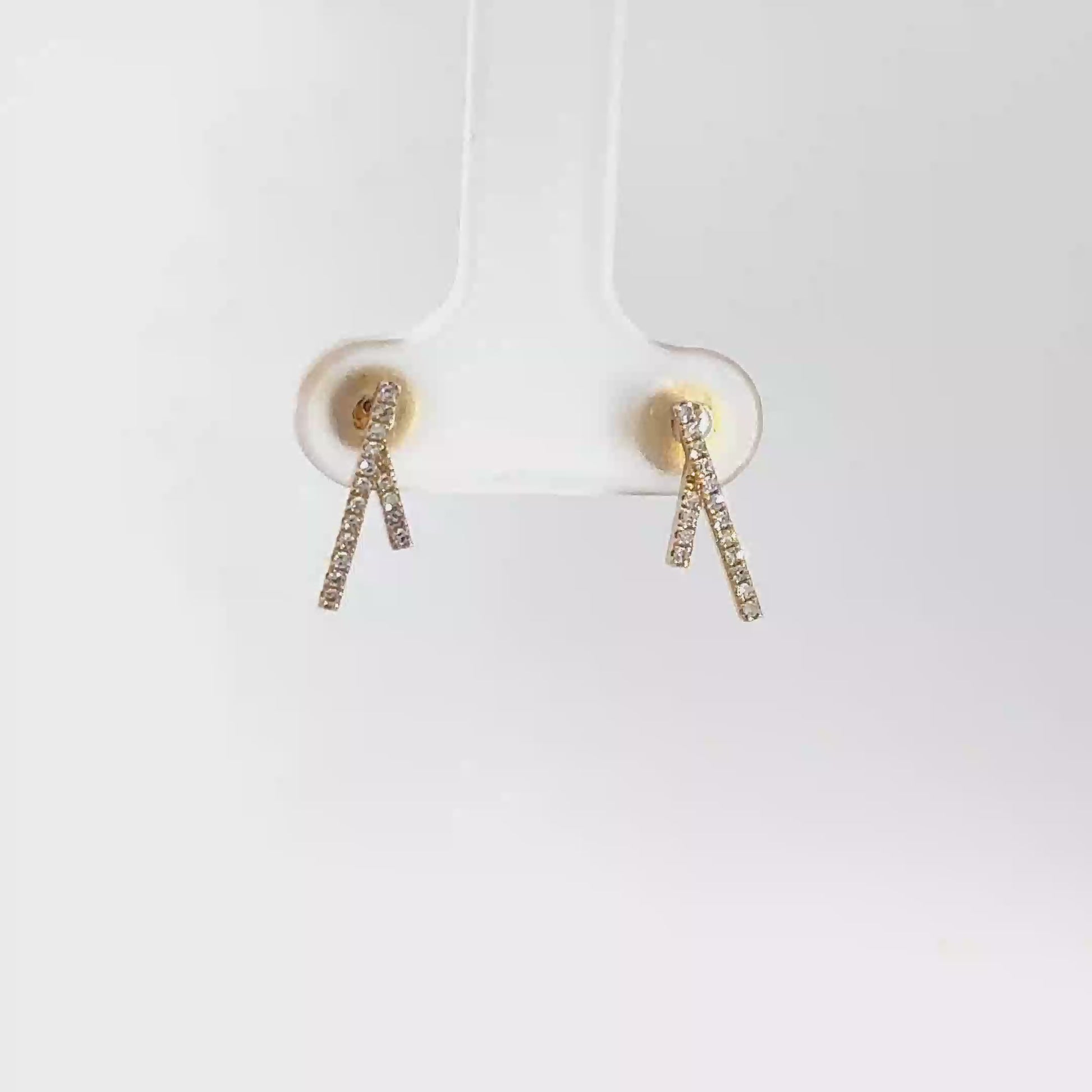 These fashion earrings are made of 14k yellow gold and feature 32 single cut diamonds set in two bars, with an approximate total weight of .10cttw.