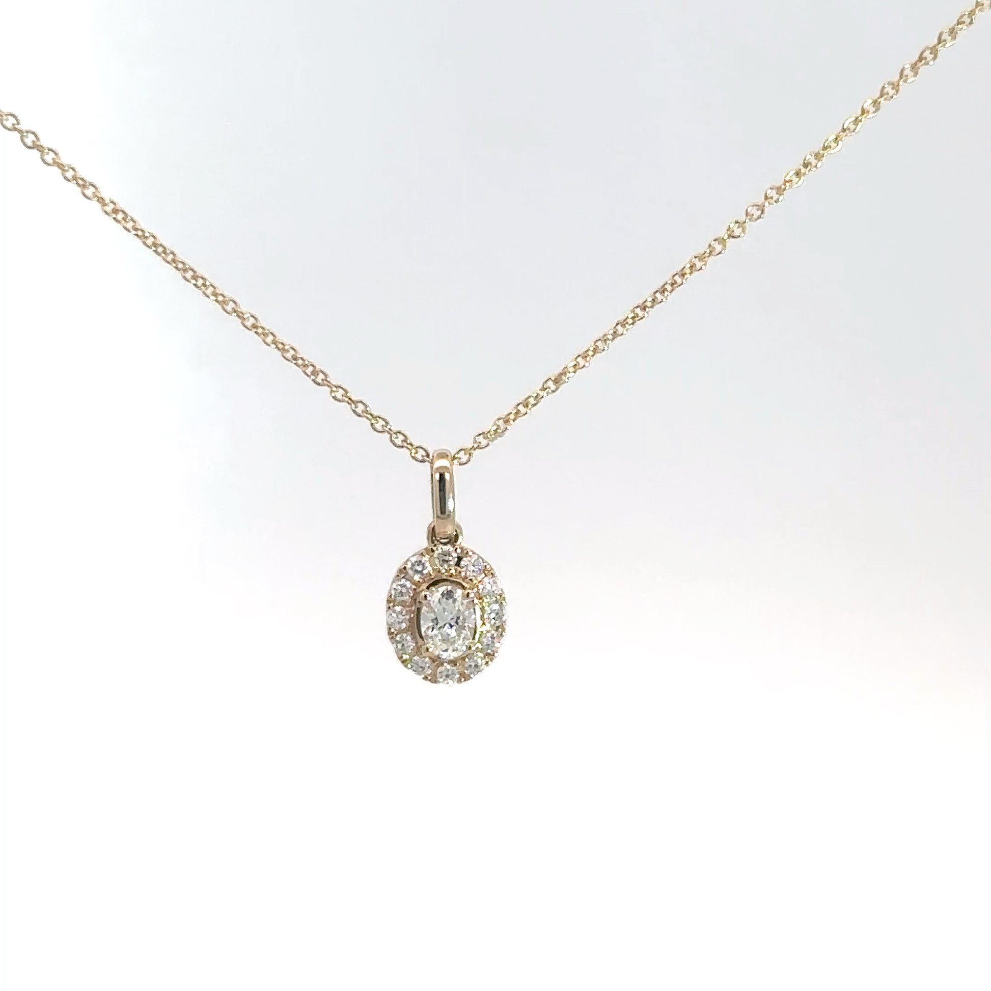 14k Yellow Gold Diamond Oval with Halo Pendant .52cttw