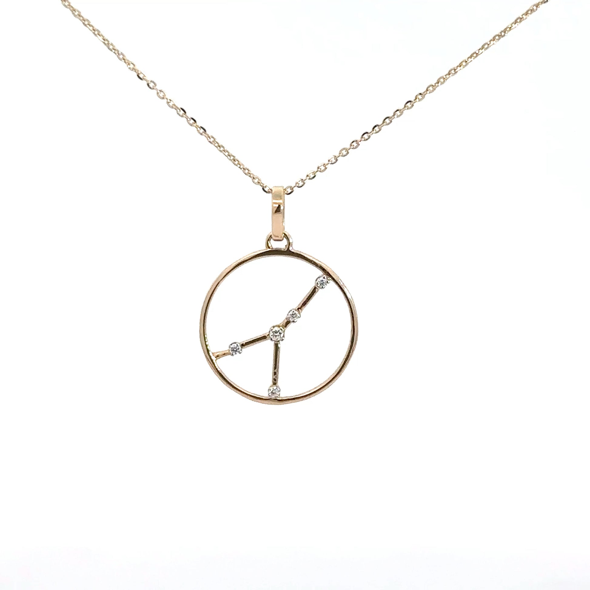 Celebrate your cosmic identity with this elegant 14k yellow gold Cancer pendant, where five sparkling round brilliant diamonds map out your zodiac constellation. Each stone is carefully positioned to capture the essence of this water sign, creating a meaningful piece that connects you to the stars. With a combined diamond weight of approximately .05cttw, this pendant offers timeless sophistication and personal significance—perfect for those who embrace their astrological nature and appreciate fine jewelry that tells their story.