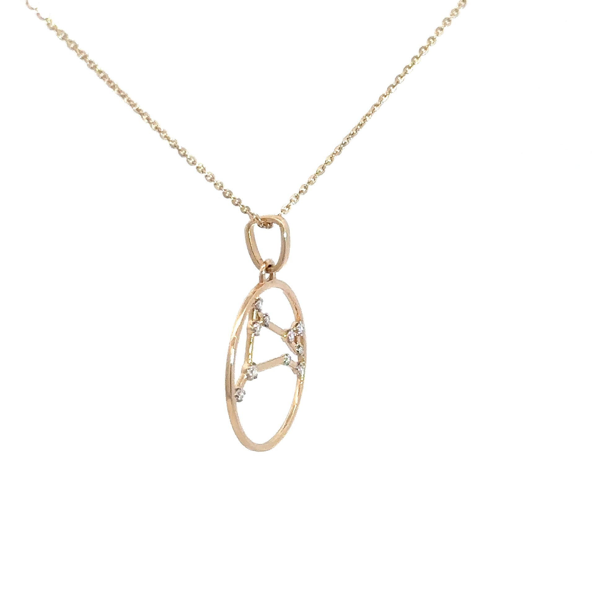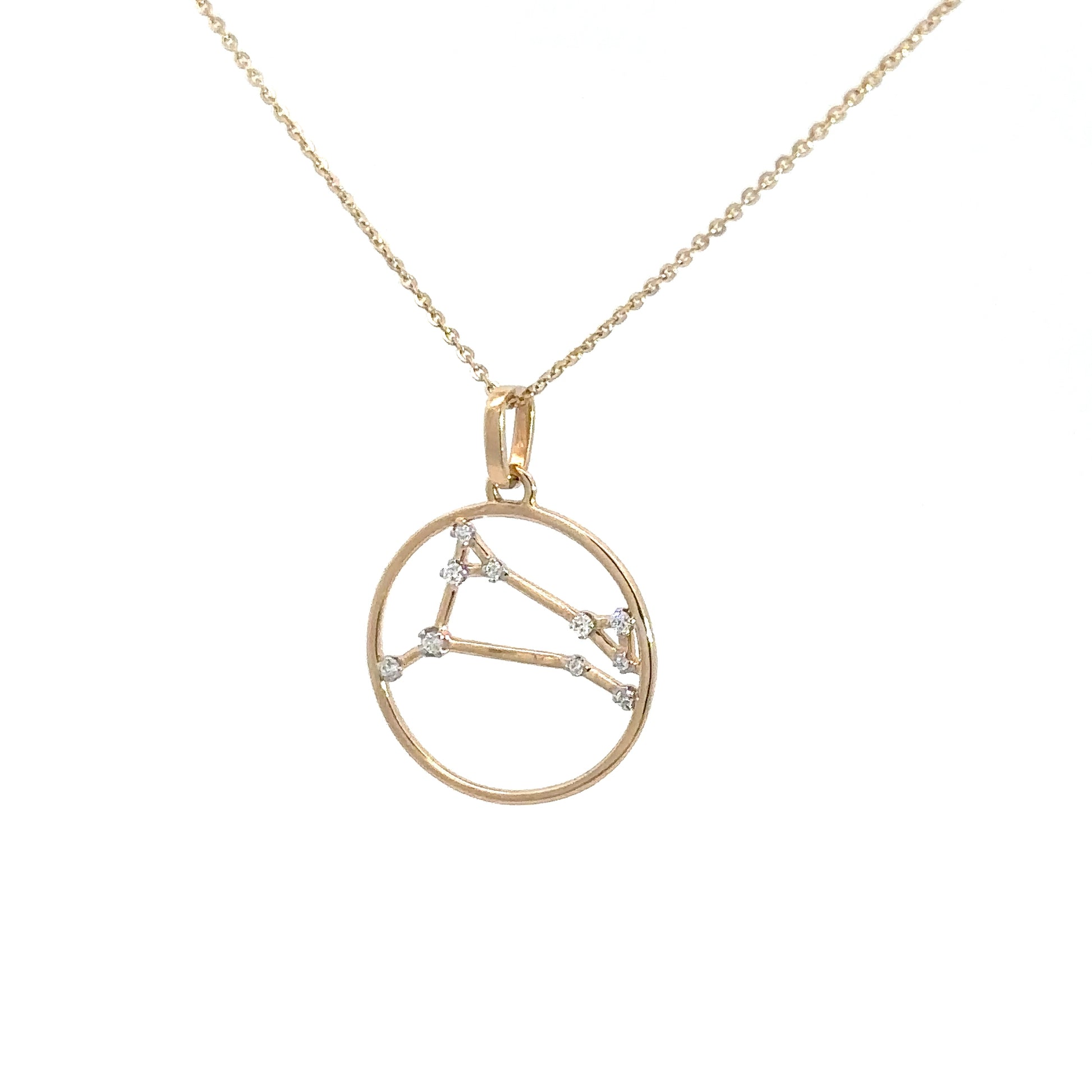 Celebrate your celestial identity with this stunning 14k yellow gold pendant featuring the Aries constellation. Ten sparkling round brilliant diamonds totaling approximately .08 carats are expertly arranged to capture the iconic ram symbol, creating a meaningful piece that connects you to the stars. Perfect for astrology enthusiasts or as a thoughtful gift, this elegant design combines timeless craftsmanship with personalized symbolism.