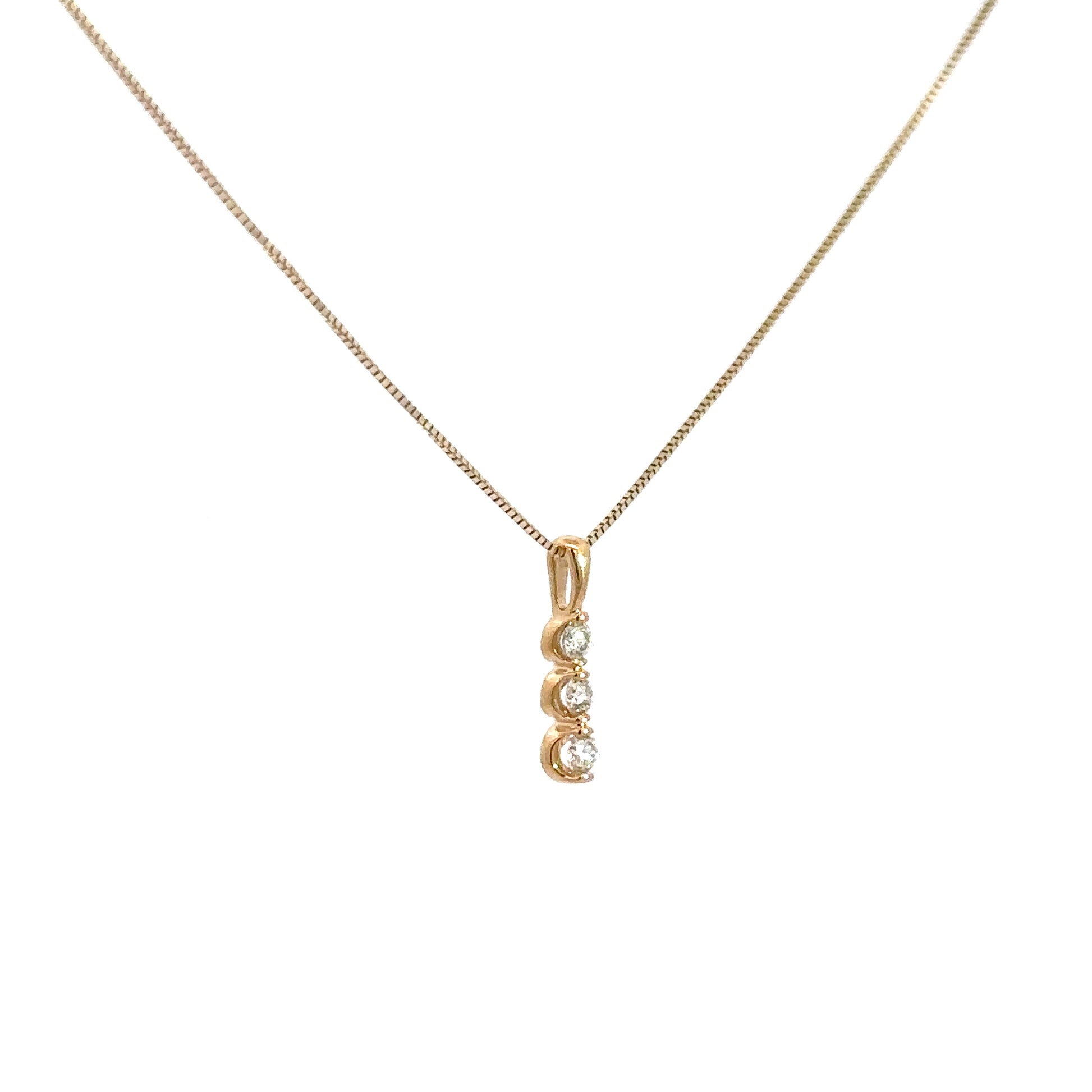 14k Yellow Gold Three Diamond Pendant 1/8cttw