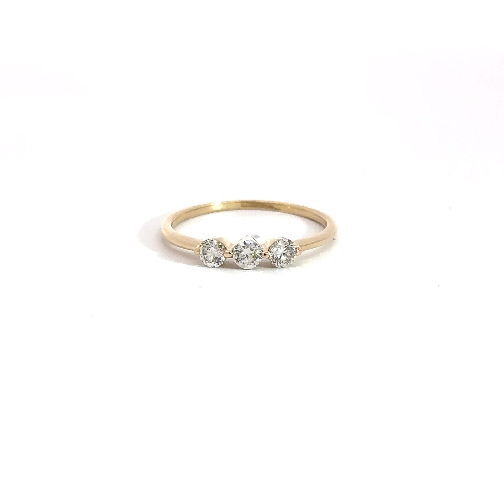 14k Yellow Gold Three Round Brilliant Diamond Ring .30cttw