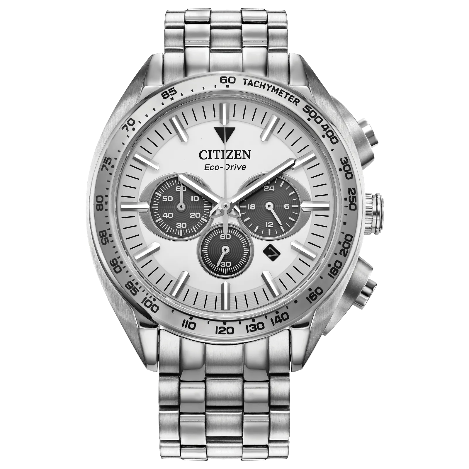 Our newest addition to the Sport Luxury collection gives a stylish update to a luxury timepiece. Designed to be versatile yet elevated and featuring a silver-tone stainless steel case with 3-piece construction and a silver-tone dial with date, 12/24-hour time, a chronograph that measures up to 60 minutes, a tachymeter, and sapphire crystal. The stainless-steel bracelet features a fold-over clasp with push buttons for easy accessibility. Water resistant up to 100 meters and featuring Citizen’s sustainable Eco-Drive technology powered by any light that never needs a battery, this striking men’s watch transitions seamlessly from day into evening with style. Caliber B620.