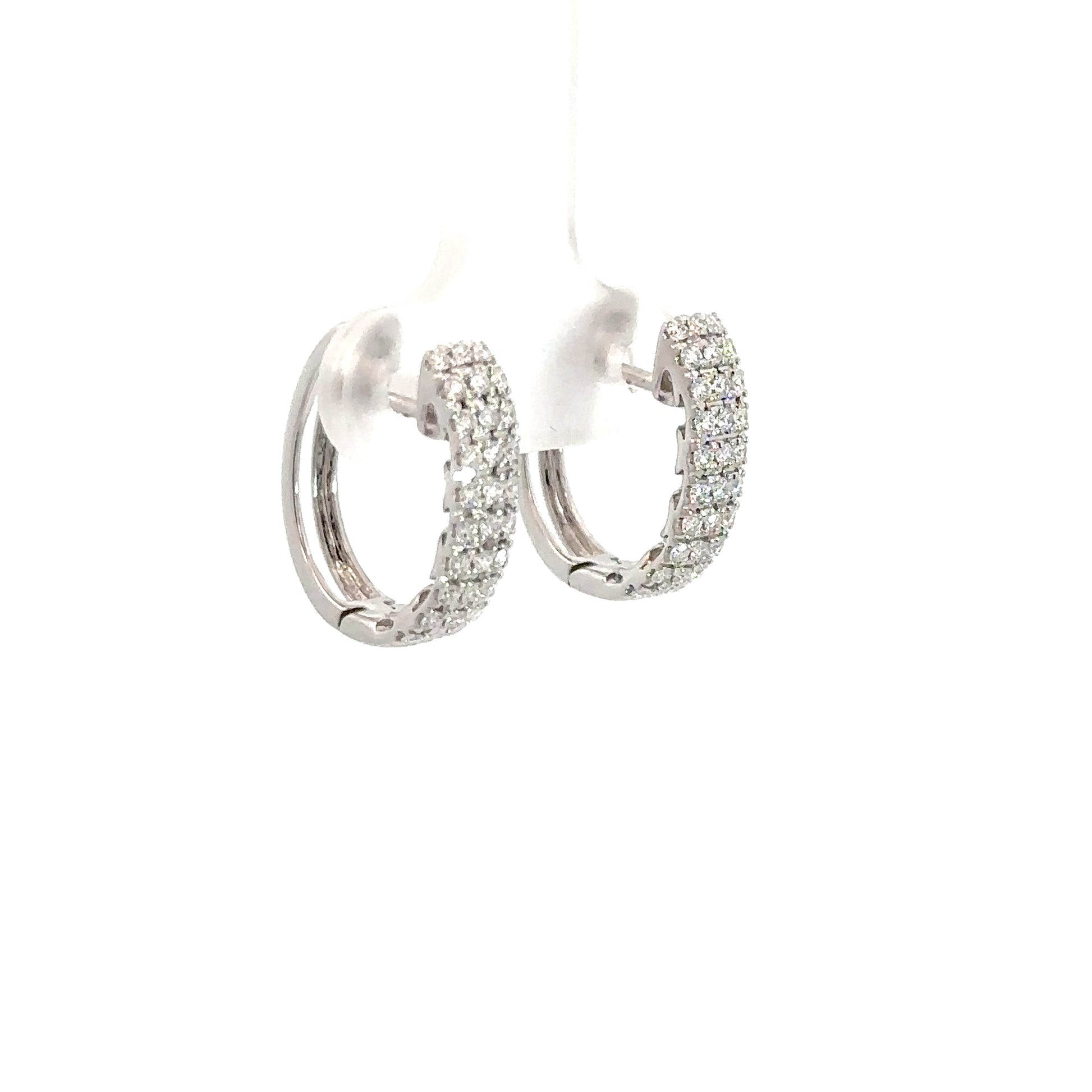 These elegant ladies' hoop earrings are crafted from 14k white gold and feature a stunning display of 60 diamonds arranged in three shimmering rows. Together, the diamonds total approximately 0.50 carats, adding subtle sparkle to any look.