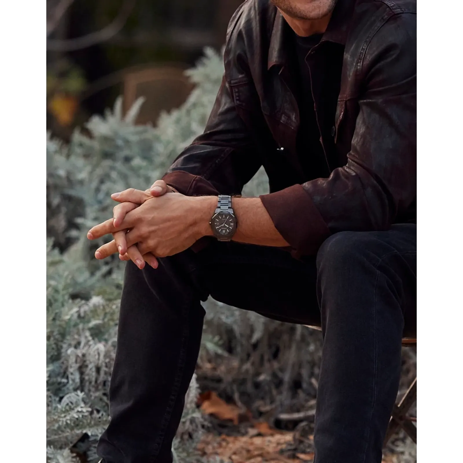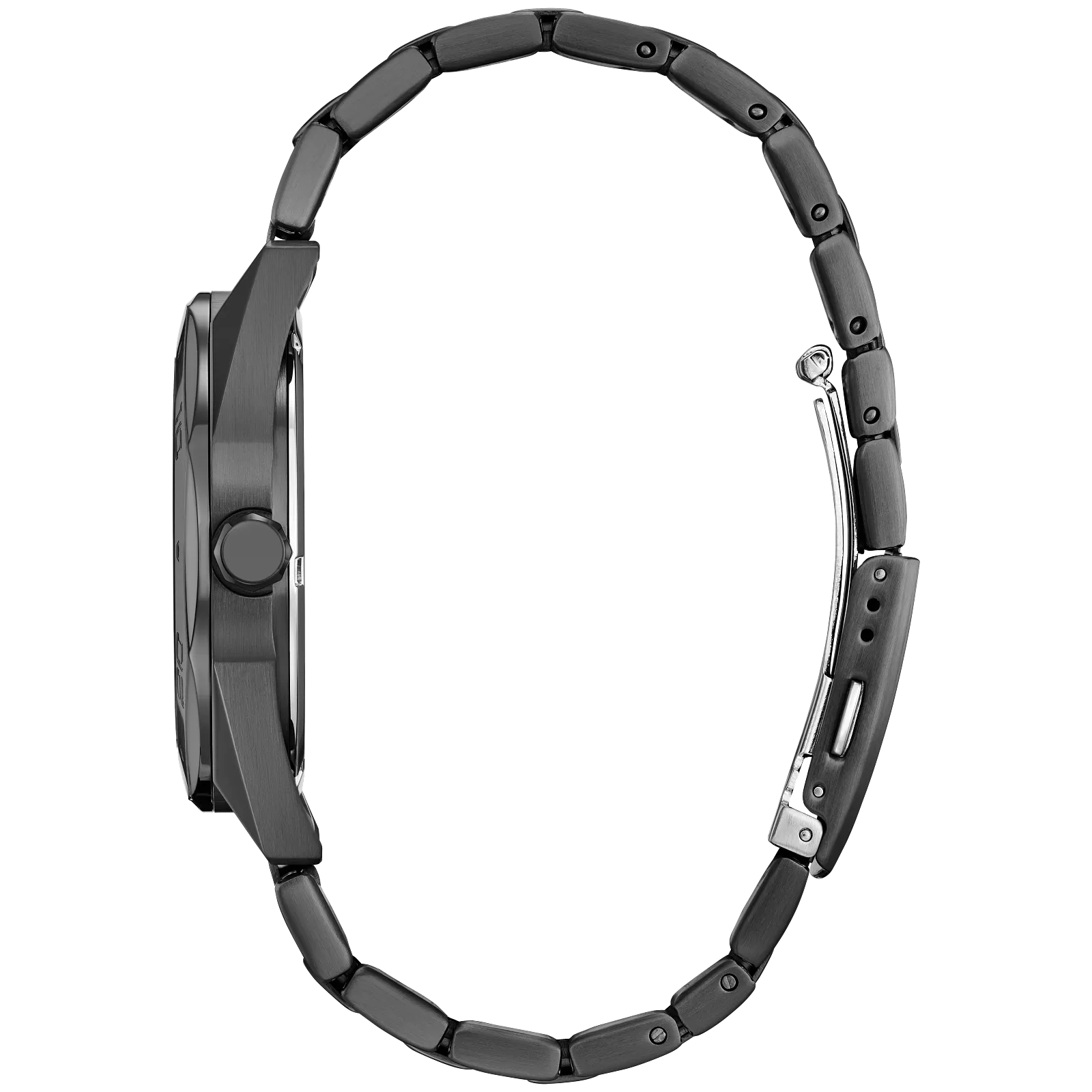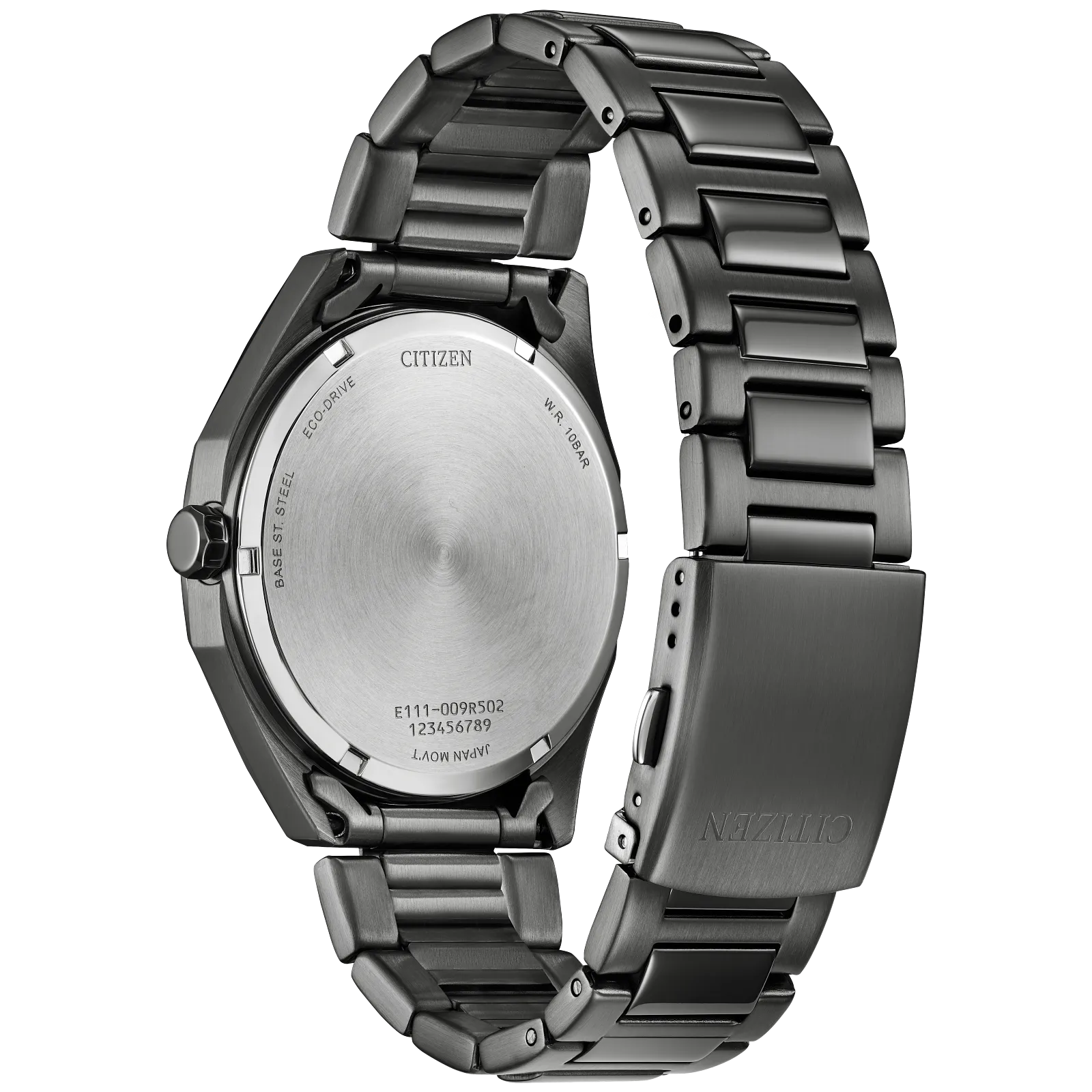 Confidently go from work to play with the new Odyn. Featuring a gray-tone stainless steel case measuring 41mm in diameter, the sports-focused timepiece makes use of sharp lines and monochromatic styling to make a statement on the wrist. A faceted 60-minute bezel, H-link bracelet, and 100m water resistance ensure all-purpose wear. On the dial, a textured gray display is presented, with applied indices in bright white alongside a 3 o'clock date window providing high legibility and daily utility. Featuring Citizen's Eco-Drive technology, sustainably powered by any light and never needs a battery. Caliber number E111.