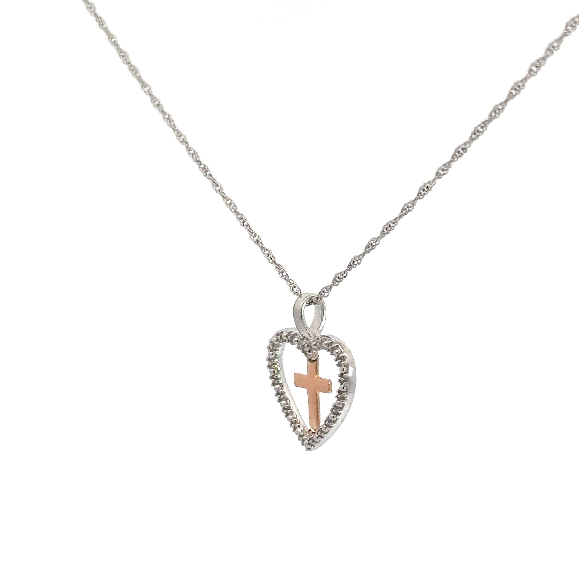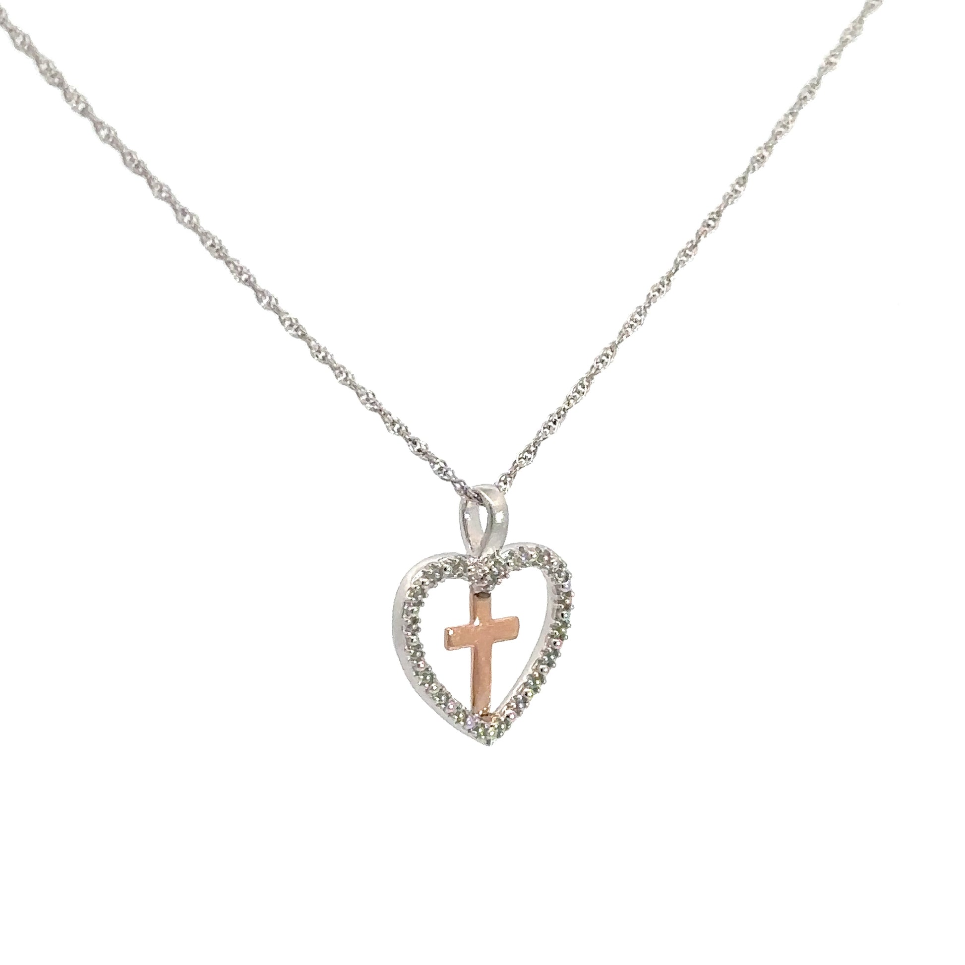 Sterling Silver & 10k Rose Gold Heart/ Cross Pendant