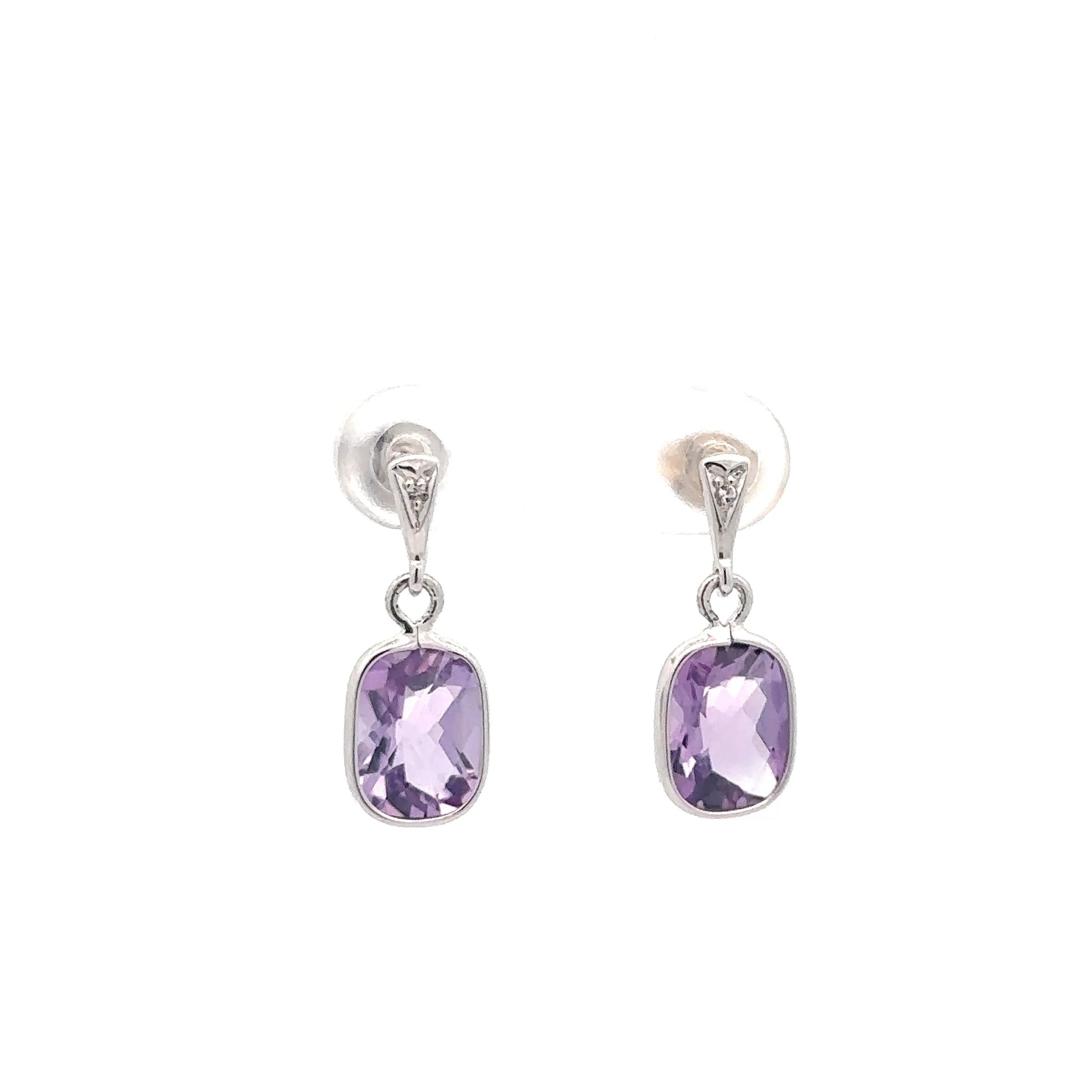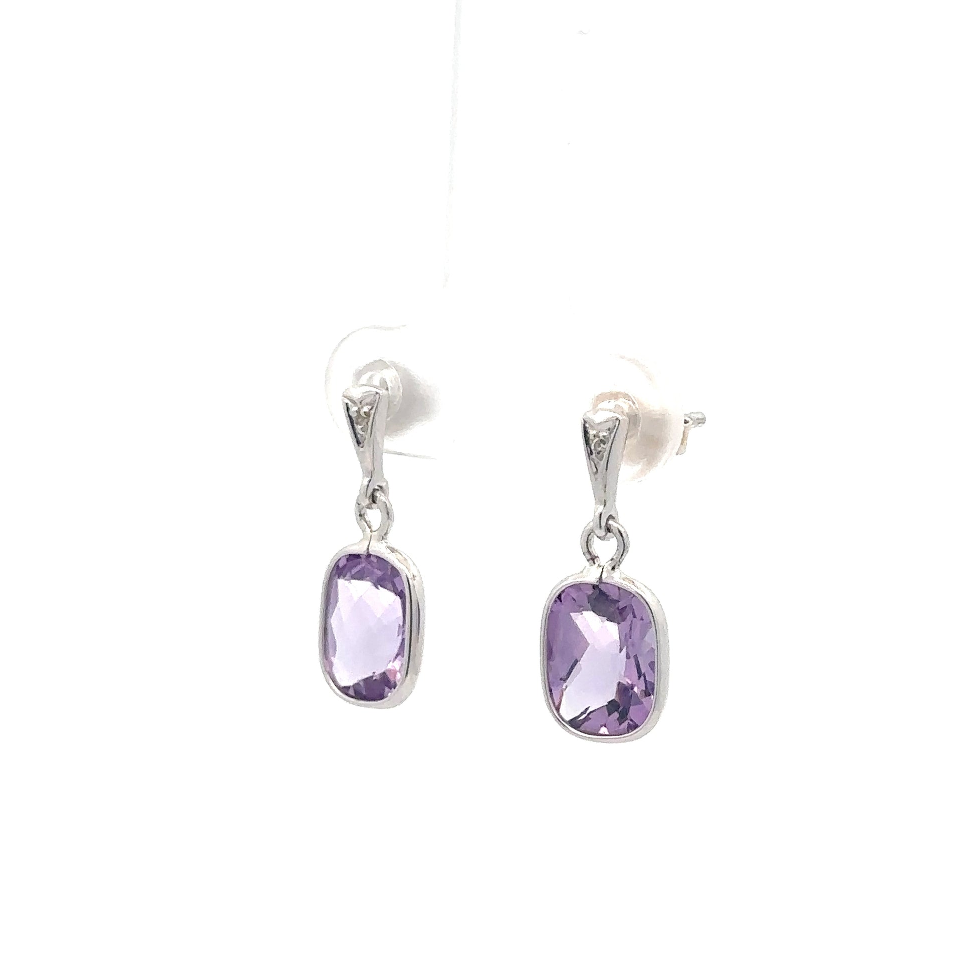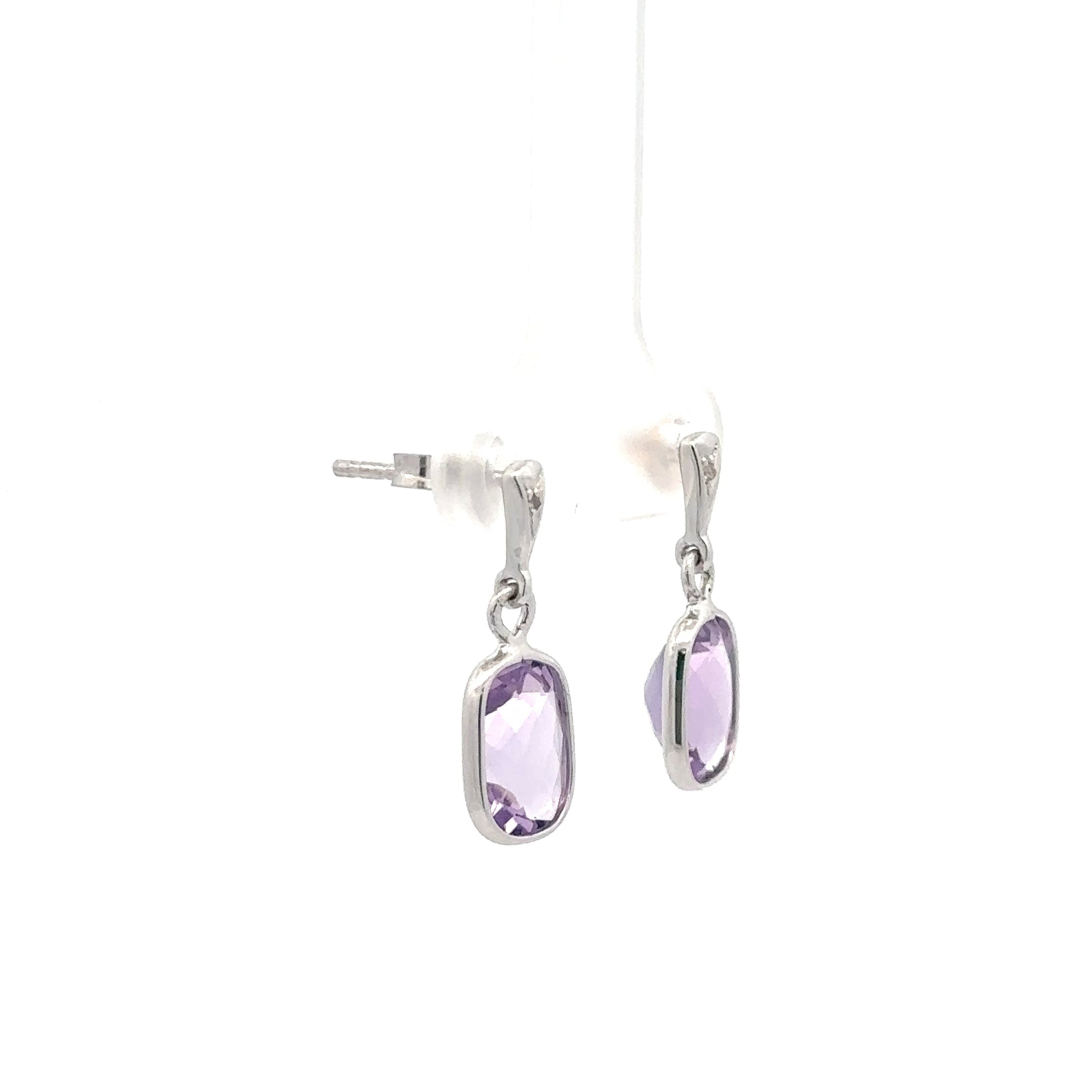 Indulge in elegant, eye-catching style with these Sterling Silver Amethyst Dangle Earrings. Adorn your ears with the mesmerizing beauty of elongated amethyst gems that delicately sway with your every move. Elevate your look and channel the powerful energy of amethyst in these stunning earrings. Feel confident and empowered as you showcase your unique sense of style. Bring a touch of luxury and sophistication to any outfit with these beautiful dangle earrings.