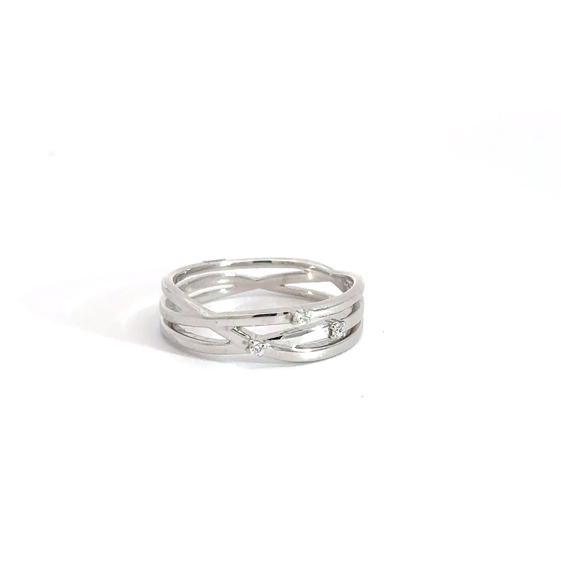 Indulge in the luxurious and dazzling beauty of this Sterling Silver and Diamond Fashion Ring. Crafted with multiple rows of twisting silver bands, this ring glistens with round diamonds that have an approximate total weight of .03ct. Elevate your style and make a statement with this stunning piece.