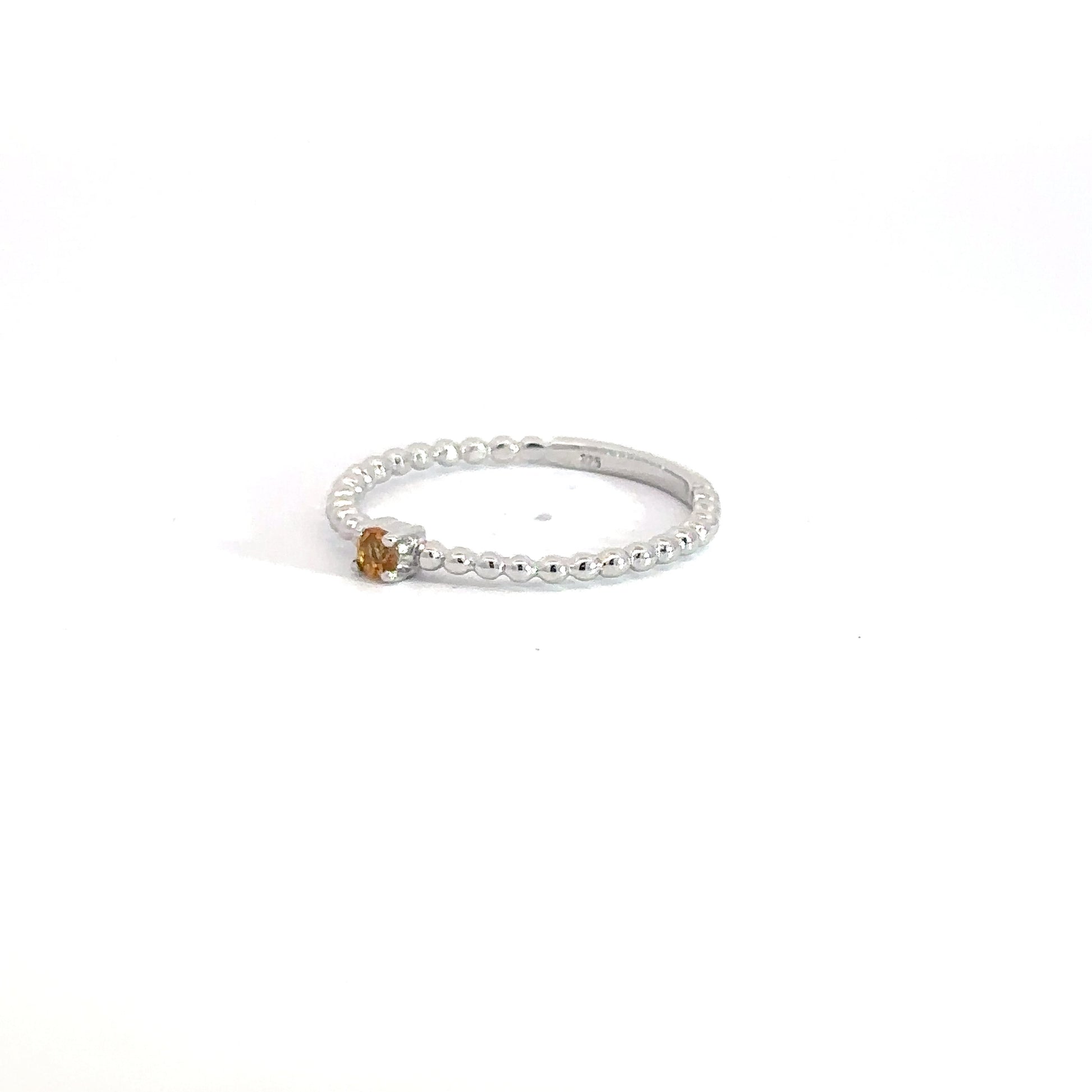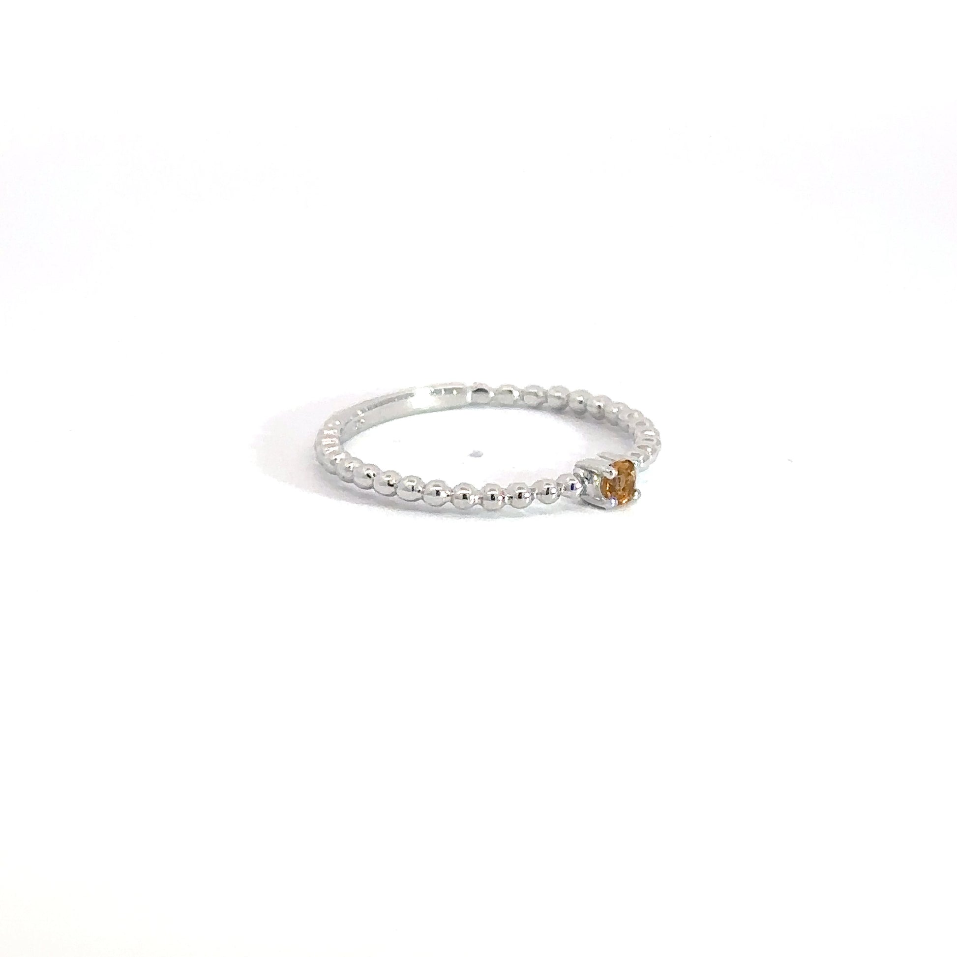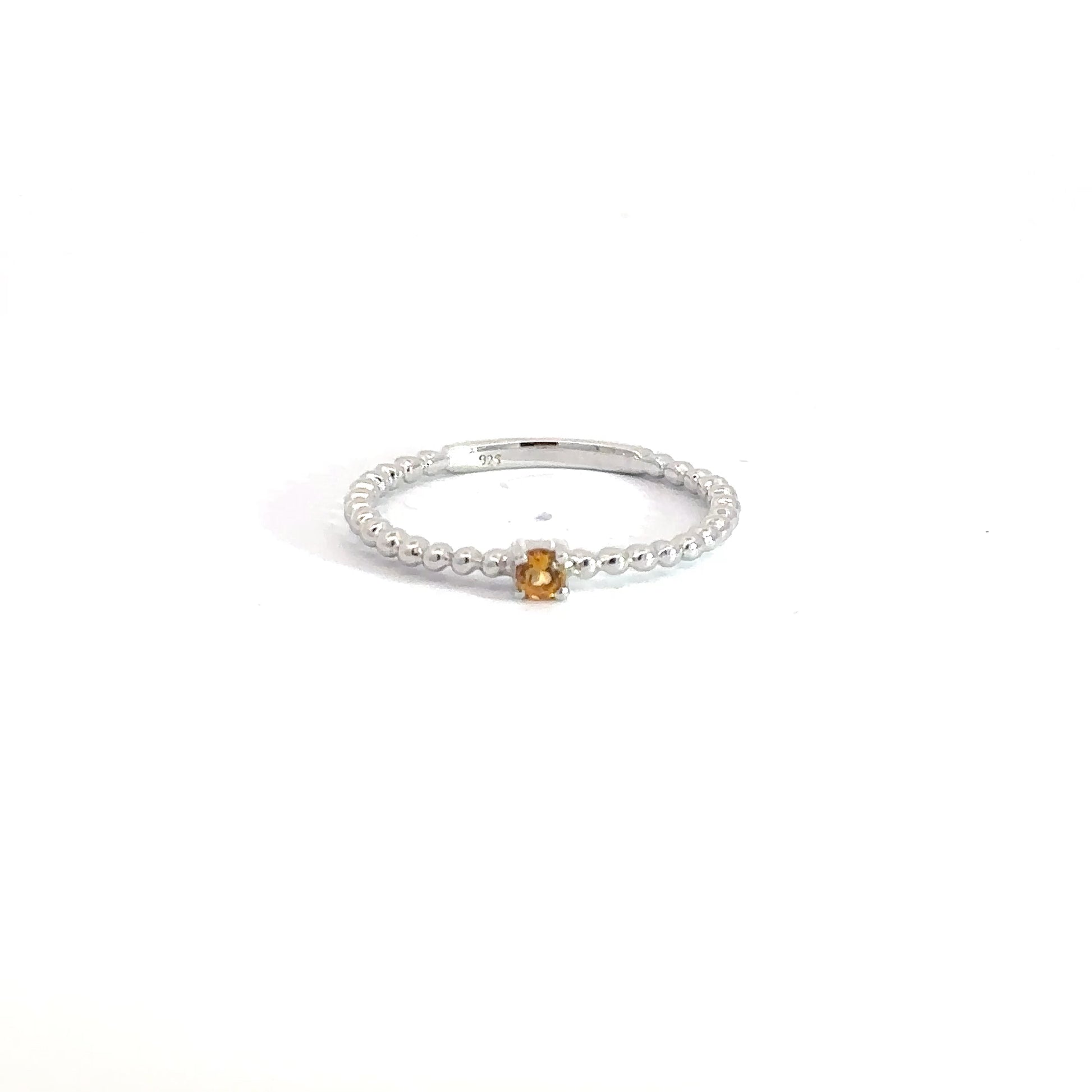 Transform any outfit into a statement piece with this stunning sterling silver citrine ring. The round citrine is beautifully showcased on a beaded band, creating a unique and eye-catching design. Elevate your style and confidence with this luxurious accessory.