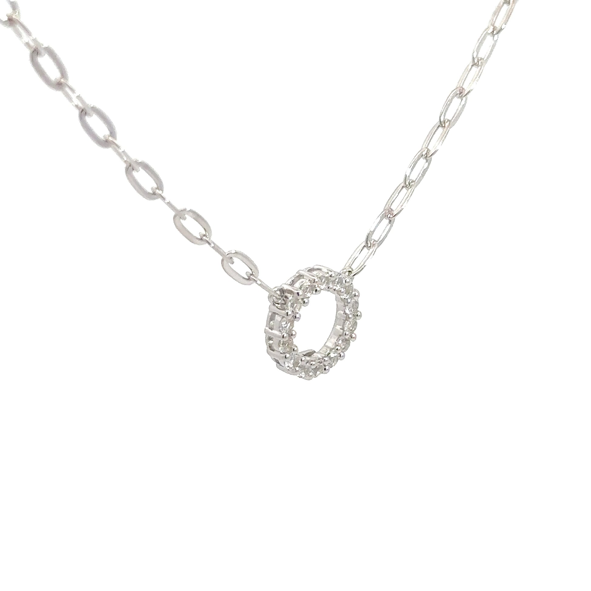 Get ready to turn heads with this exquisite Sterling Silver Cubic Zirconia Circle Pendant! The dazzling cubic zirconias, arranged in a stunning circle design, are sure to catch the light and draw all eyes to you. And with its easy-to-wear paperclip chain, this pendant is the perfect accessory for any outfit. Every time you wear it, you'll feel confident, elegant, and ready to take on the day. Don't settle for ordinary jewelry - elevate your style and make a statement with this stunning pendant today!