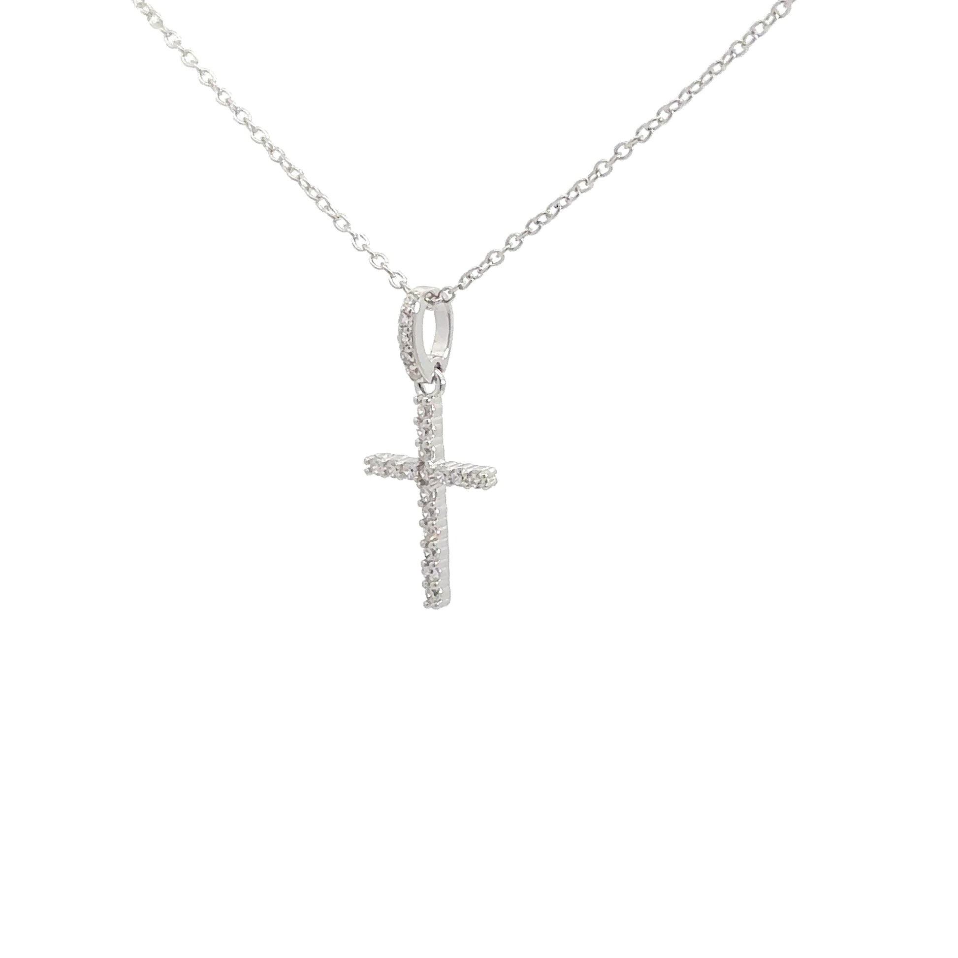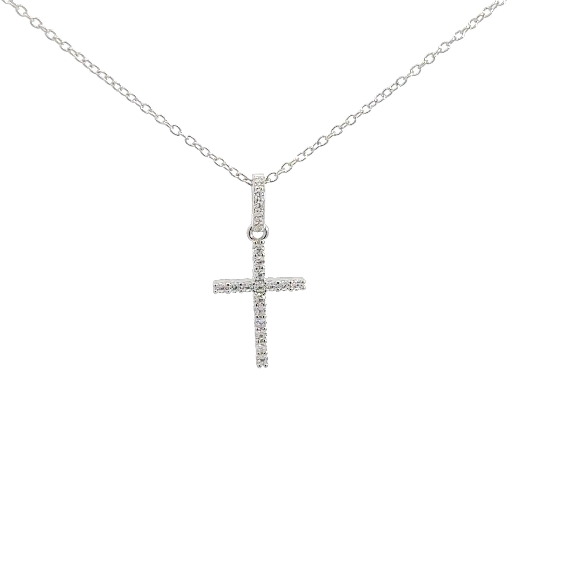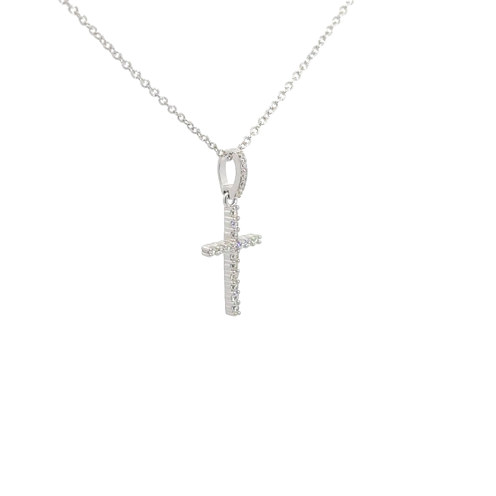 Wear this stunning Sterling Silver Cubic Zirconia Cross Pendant as a reminder of your faith and as a beautiful symbol of elegance and style. The intricate design and sparkling stones will catch the light, making this necklace a dazzling addition to any outfit. Plus, with the included 18" sterling chain, this pendant is ready to wear right out of the box, making it a hassle-free addition to your jewelry collection. Elevate your look and show off your beliefs with this gorgeous pendant.