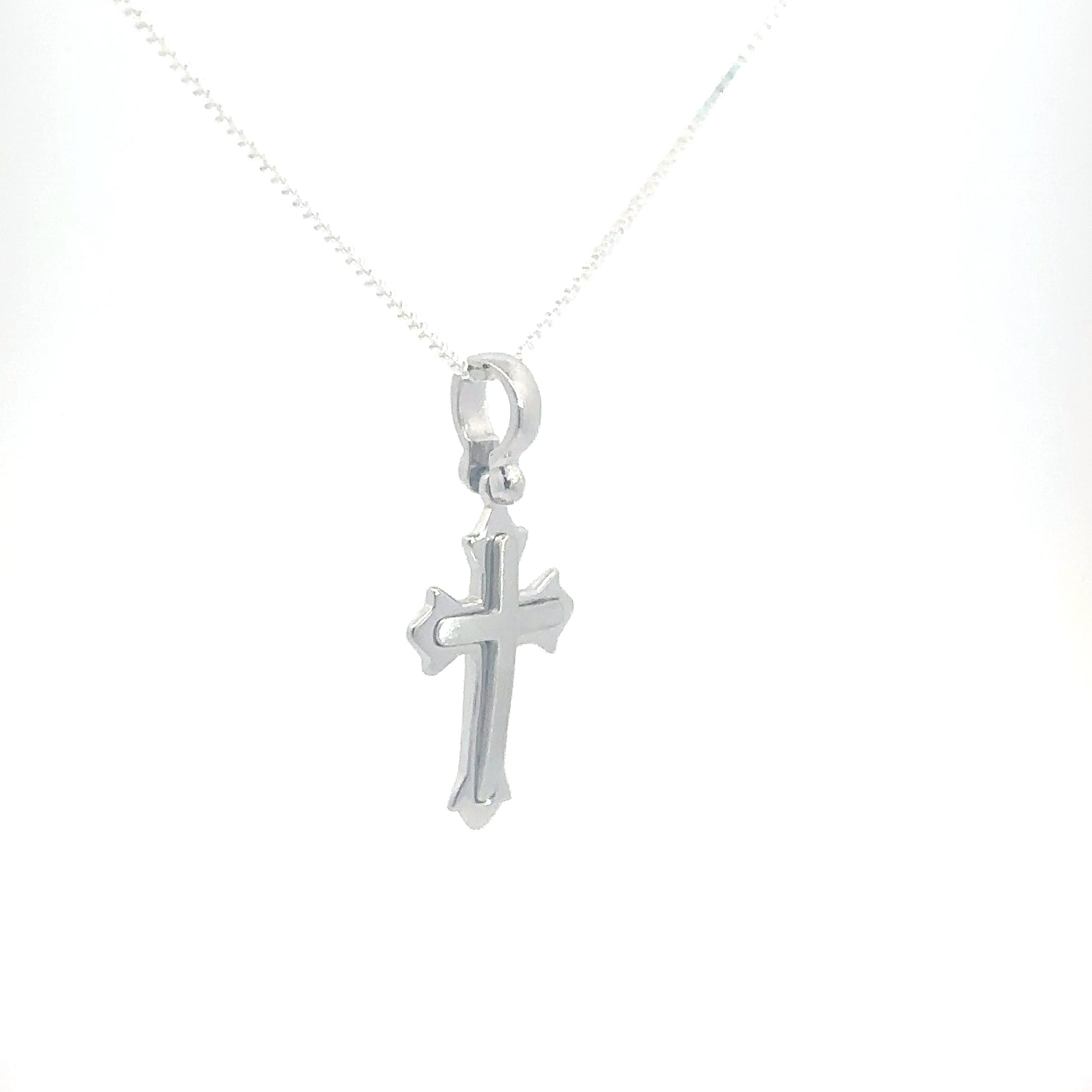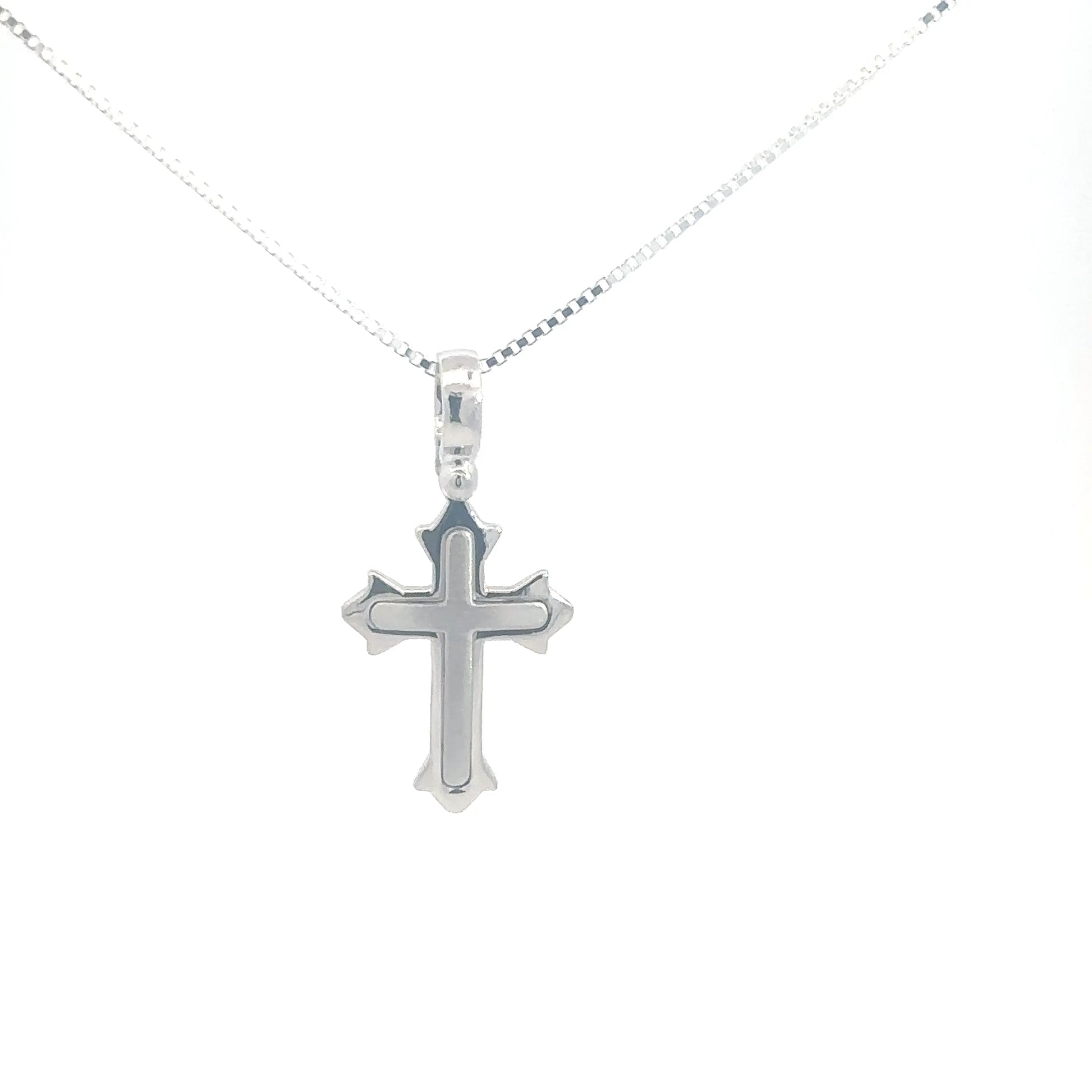 This pendant features a beautifully crafted raised cross made from sterling silver, combining elegance with timeless symbolism.