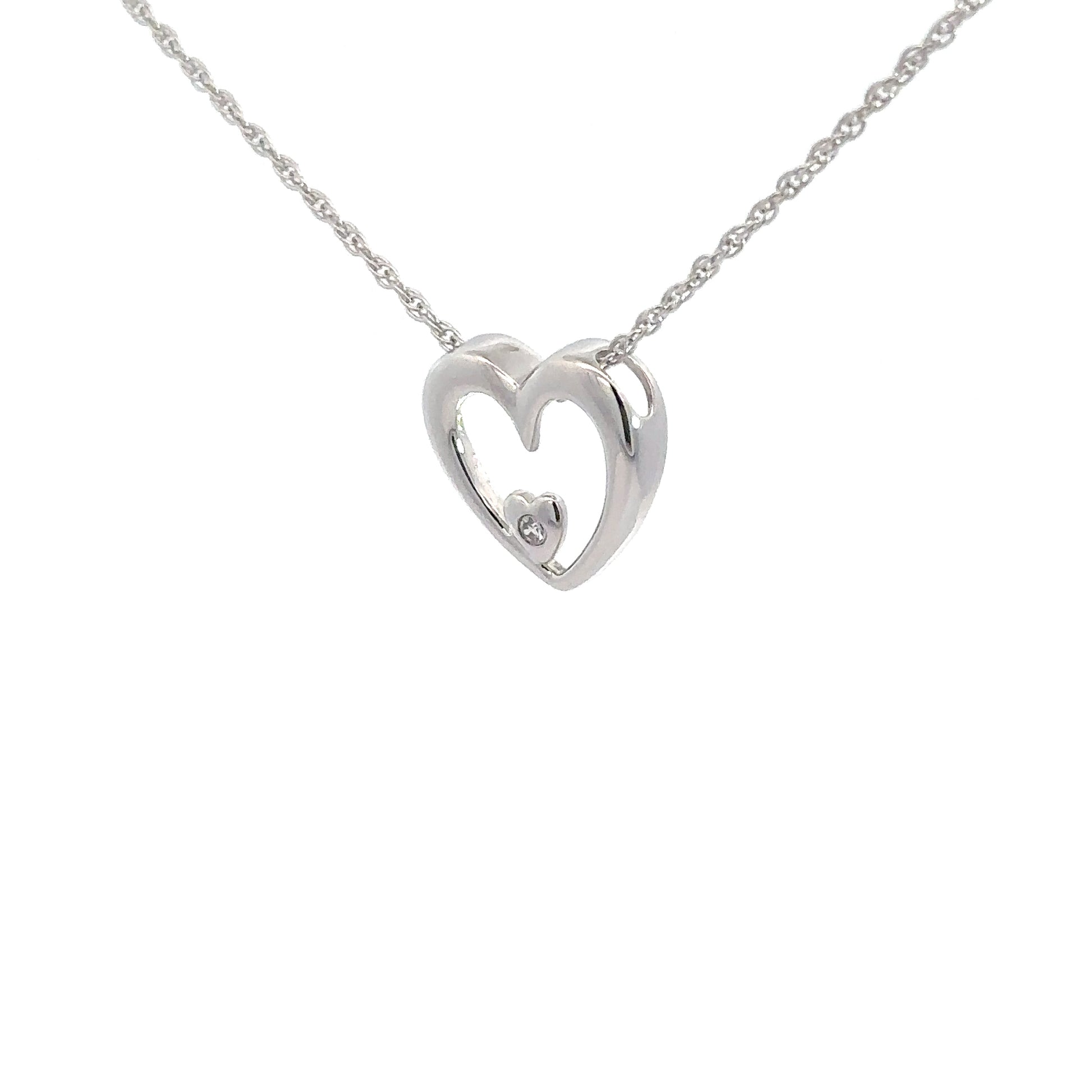 Sterling Silver Heart & Diamond Pendant