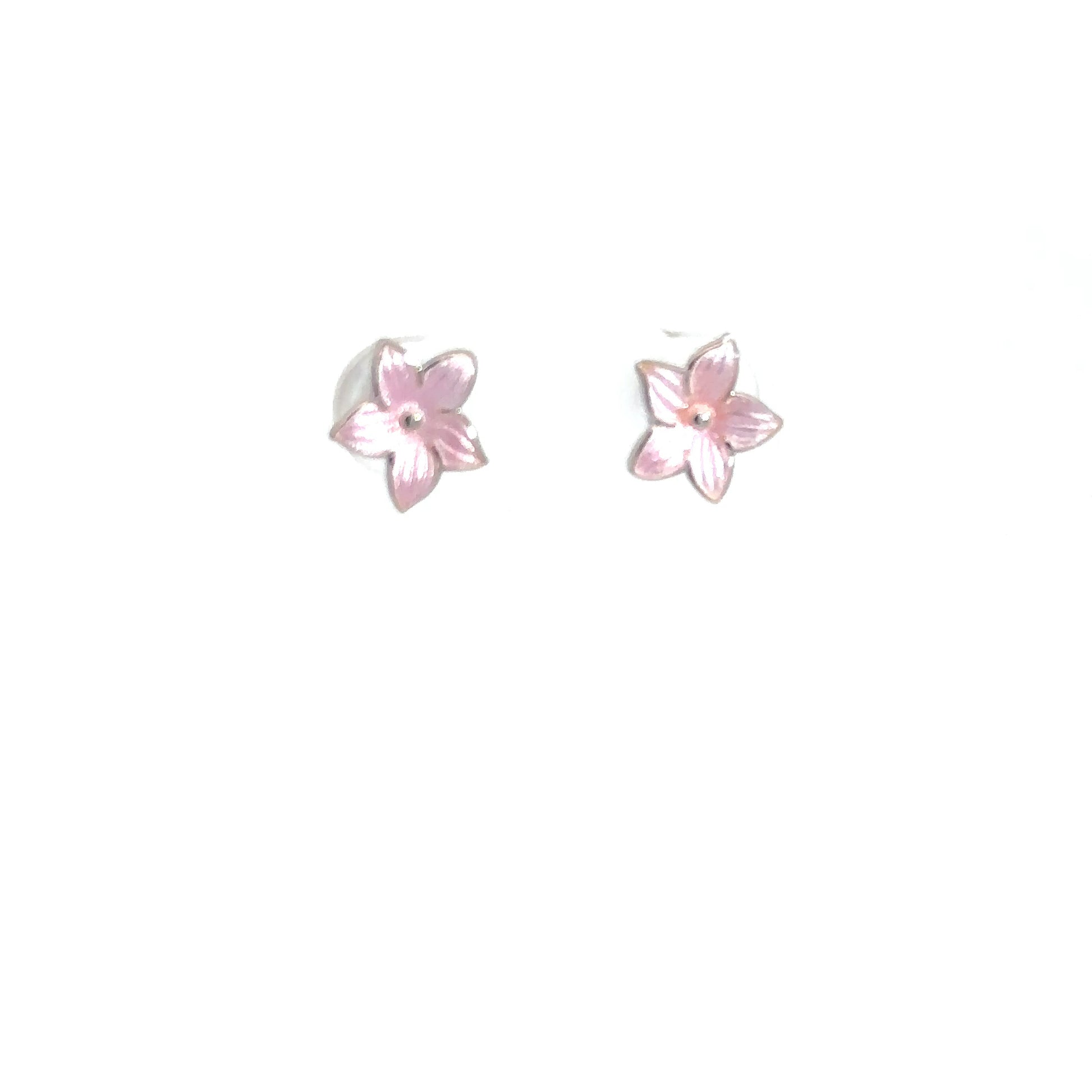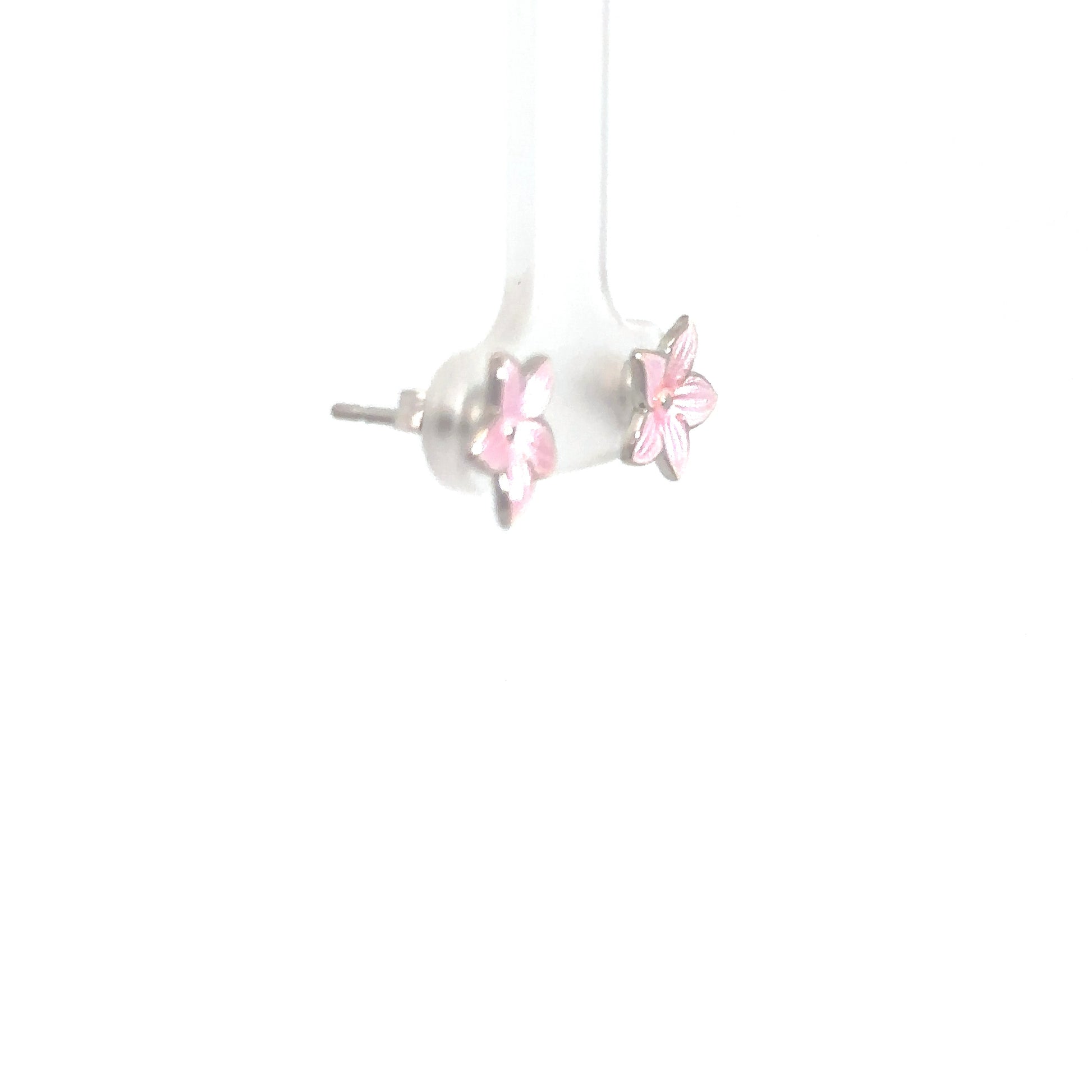 Delight in these sterling silver earrings featuring pink flowers, each hand enameled to showcase a delicate and vibrant hue.