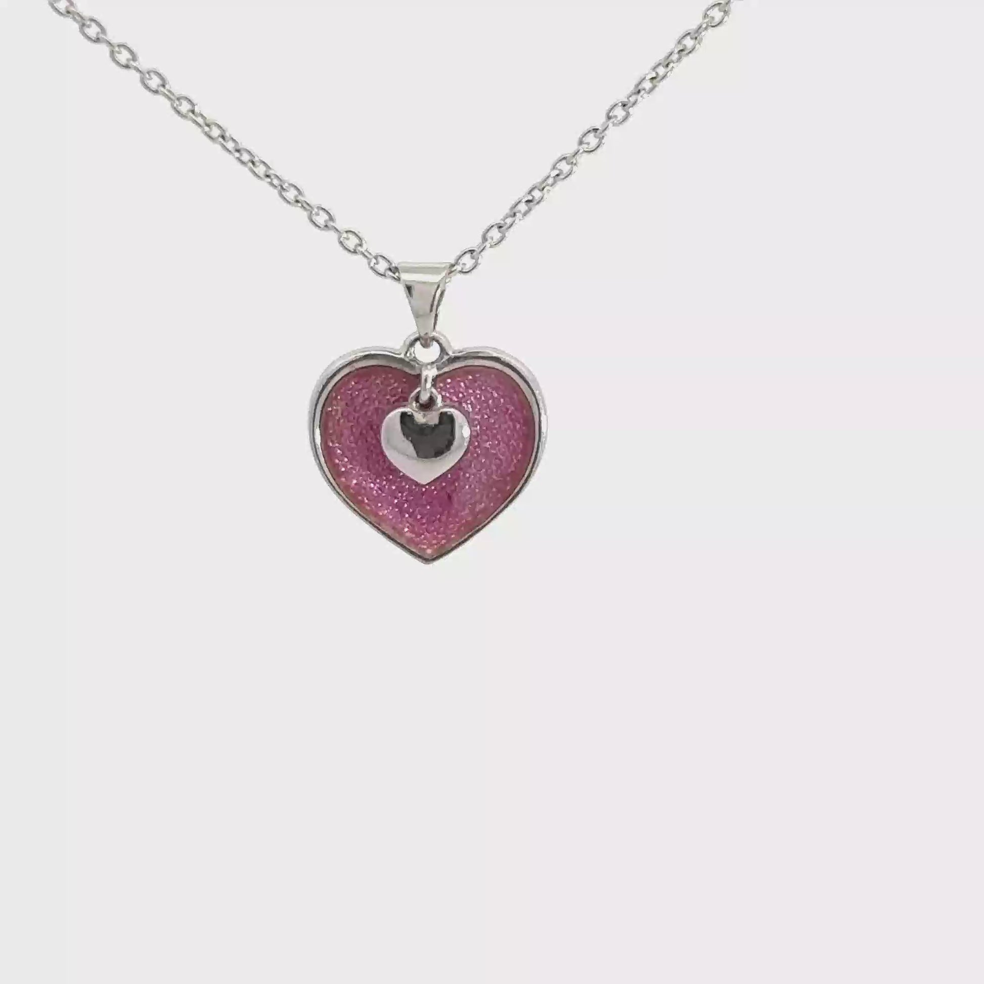 Suitable for every occasion, this Sterling Silver Pink Two Piece Heart pendant is a stunning representation of love. The pink hand enameled heart adds a pop of color to your outfit, while the small silver heart charm adds a touch of elegance. Crafted with high-quality materials, this pendant will last through any adventure life may bring. Add it to your collection and express your love in a unique and beautiful way.