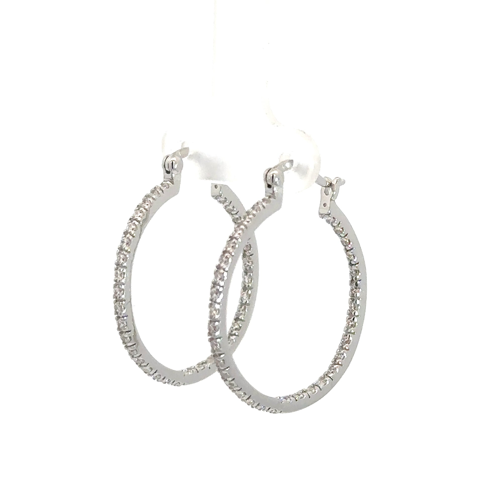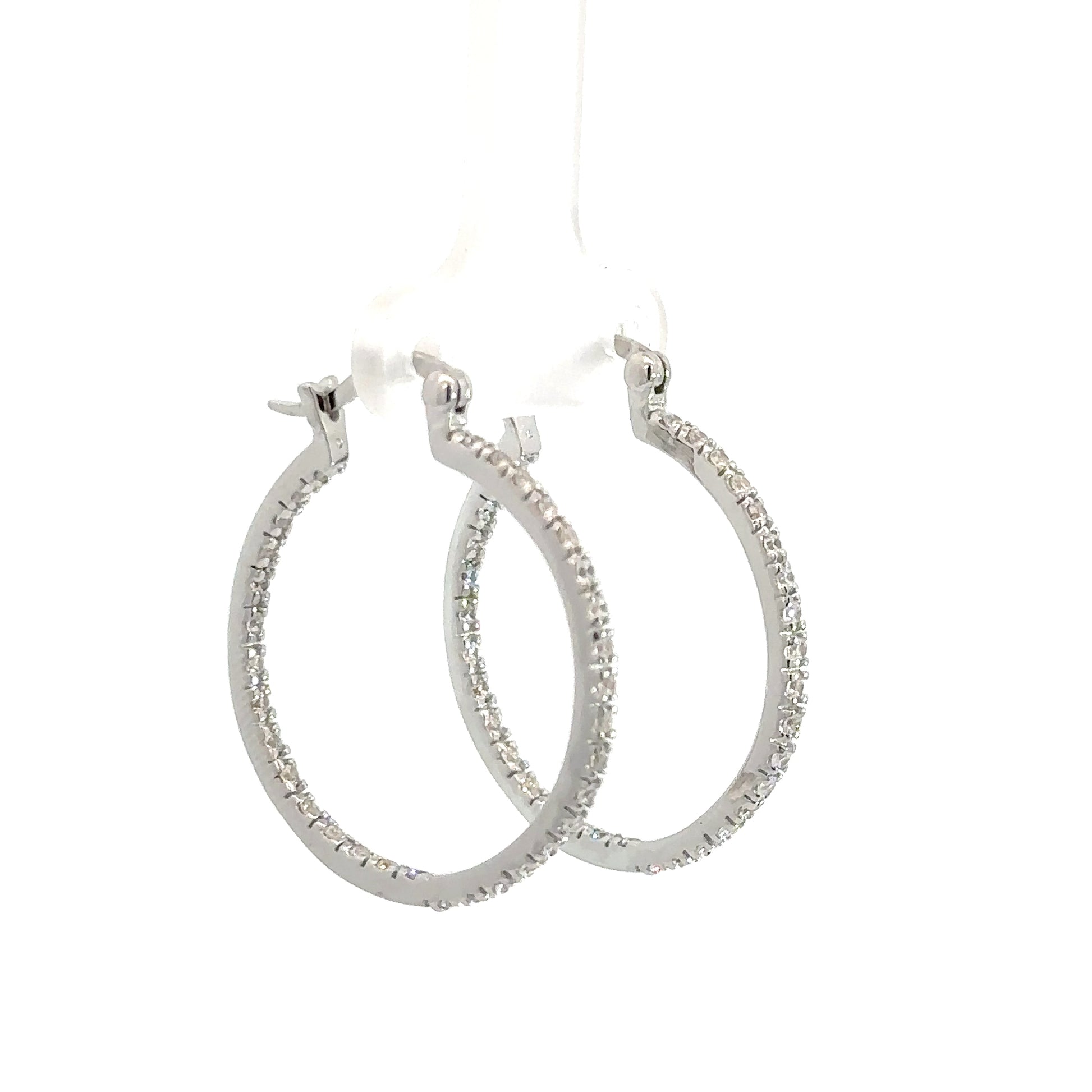 Elevate your everyday elegance with these stunning sterling silver hoops that seamlessly blend sophistication with sparkle. Featuring a sleek, skinny design and eye-catching in/out cubic zirconia settings, these versatile hoops catch the light beautifully from every angle. Crafted from quality sterling silver, they're the perfect addition to any jewelry collection—polished enough for special occasions, yet effortlessly wearable for daily style. Experience the confidence that comes with jewelry that truly shines.