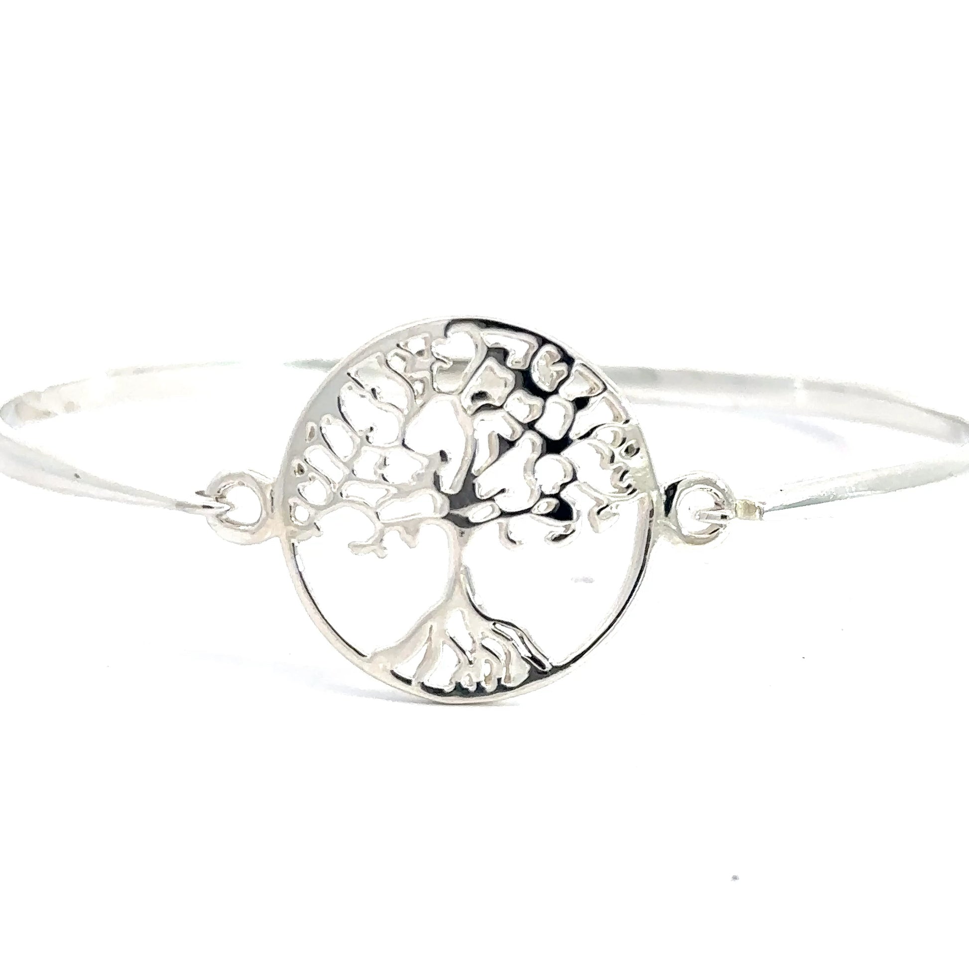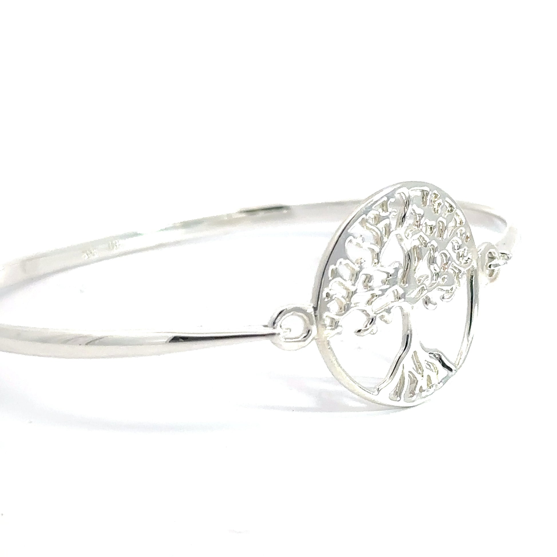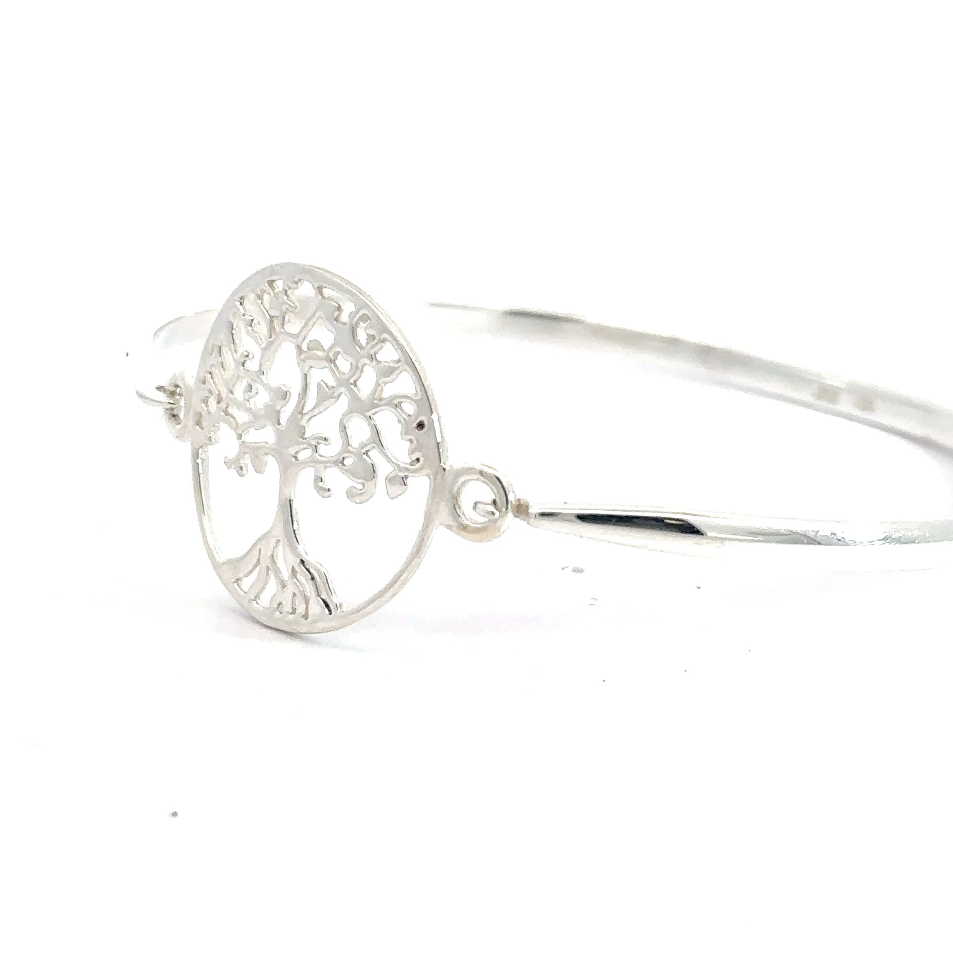 Wear the beauty and symbolism of the tree of life with this exquisite sterling silver bangle. Its intricate details and durable material make it a timeless piece of jewelry that will be treasured for years to come. Add this bracelet to your collection for a touch of elegance and meaning to any outfit!