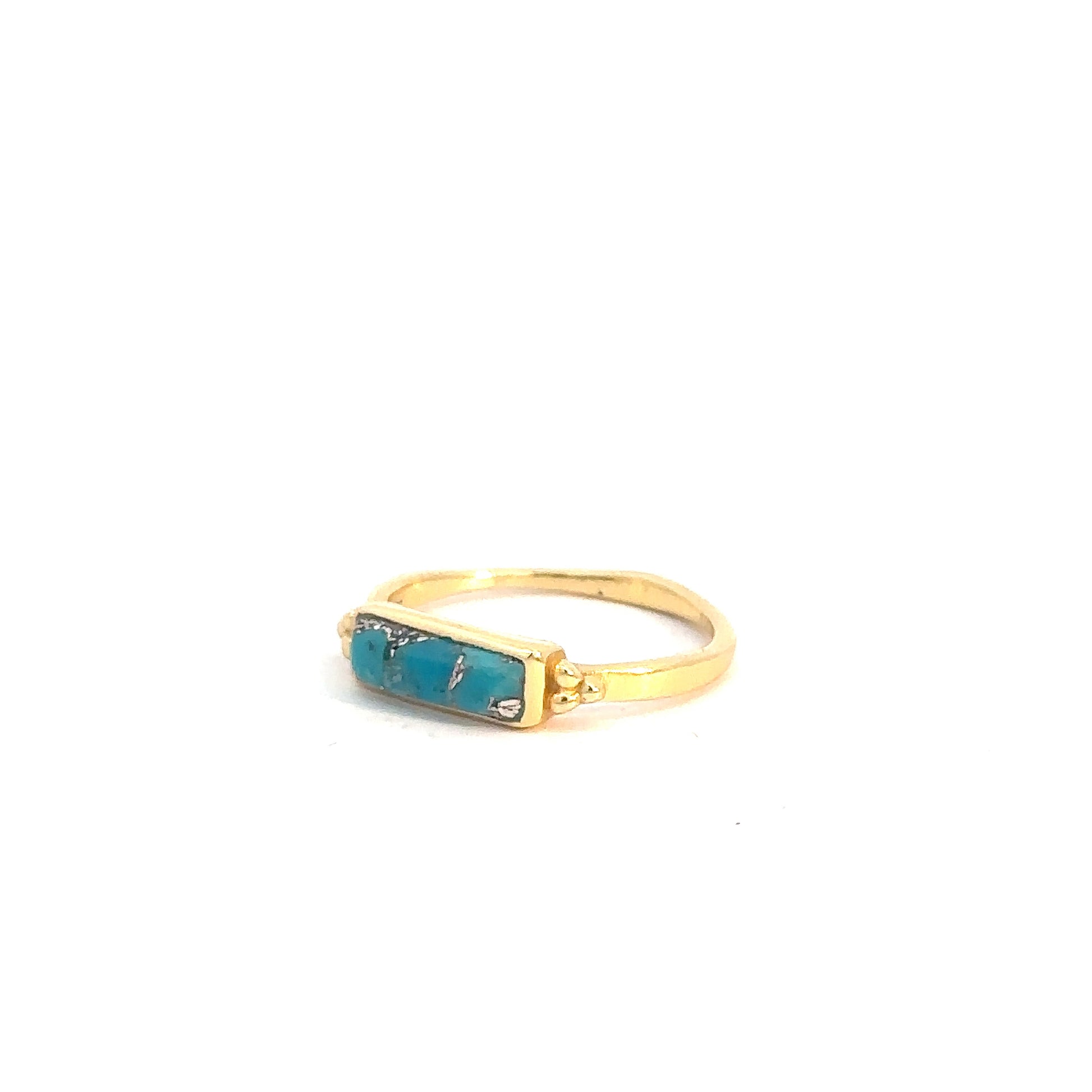 Sterling Silver Yellow Gold Plated Turquoise Rectangle Ring