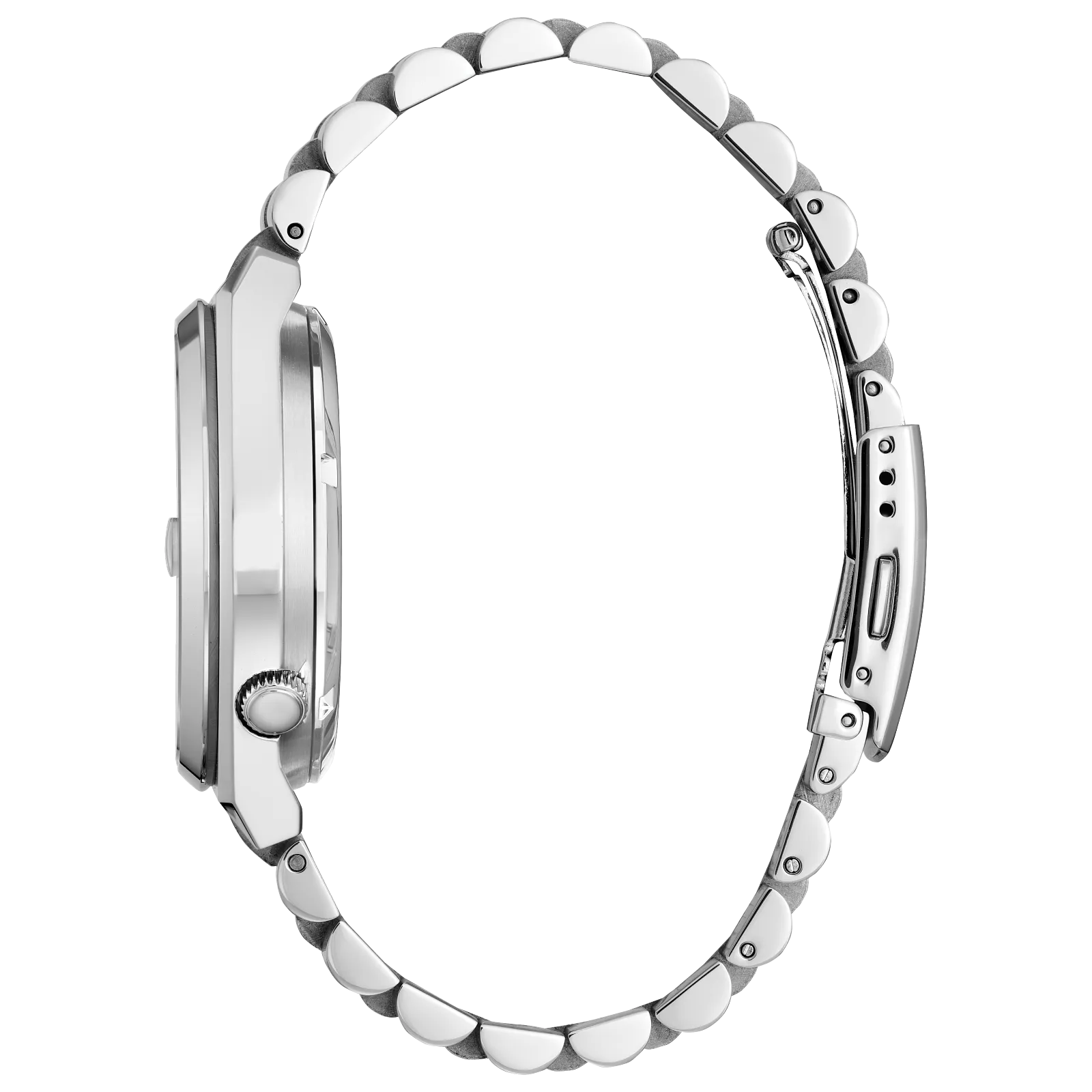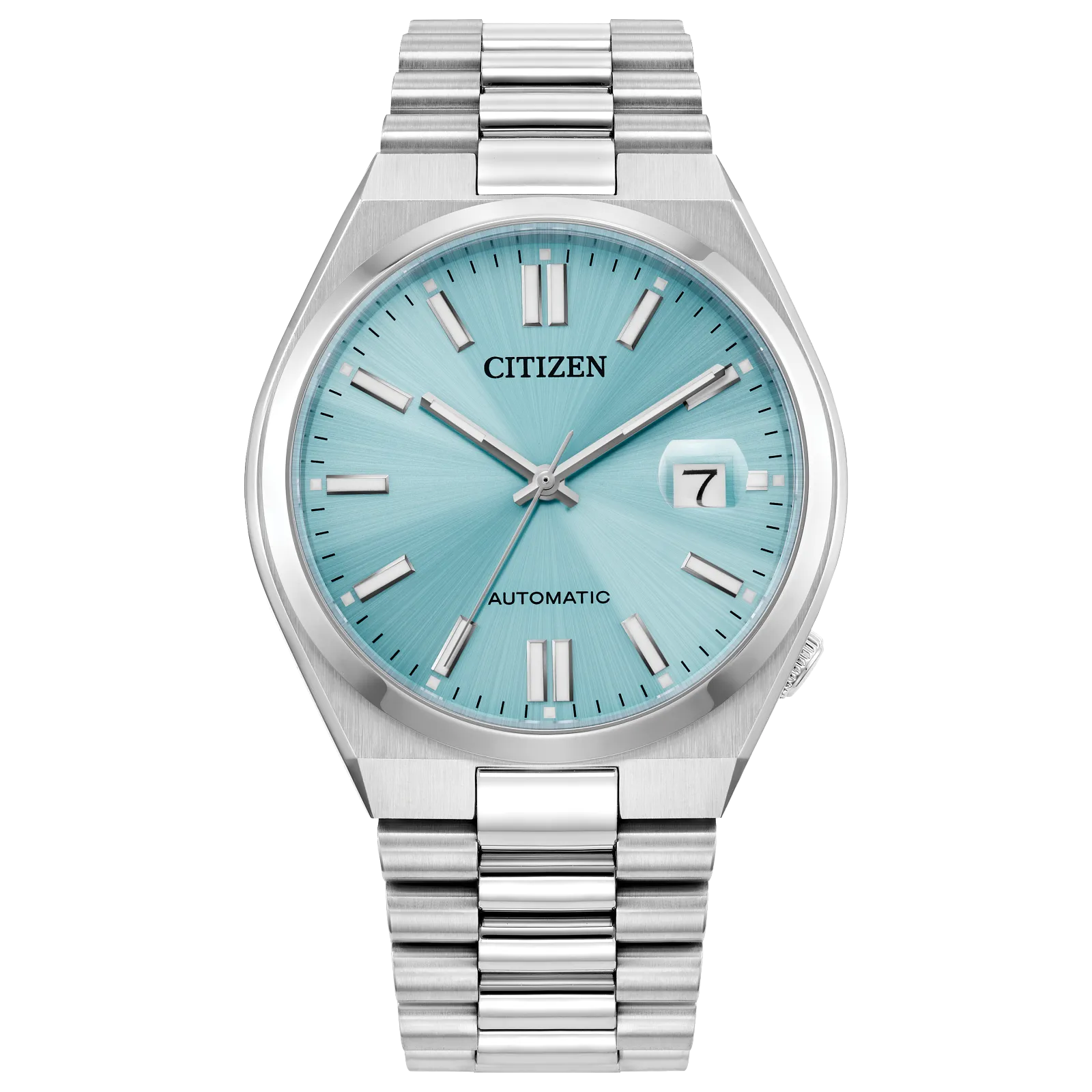 The TSUYOSA Automatic, from the NJ015 series, brings ultramodern sports styling right to your wrist. Executed in a versatile 40mm footprint, the sophisticated design of the watch makes a strong impression via a silver-tone stainless steel case and a seamlessly integrated, matching bracelet. Underneath an anti-reflective sapphire crystal, the sporty timepiece makes use of a sunray sky blue dial, with a 3 o’clock date window and contrasting silver-tone details adding to its classic aesthetic. Powered by an automatic movement and offering up to 50 meters of water resistance, the refined timepiece is a daily wearing choice ready for work, play, and everything in between. Caliber 8210.